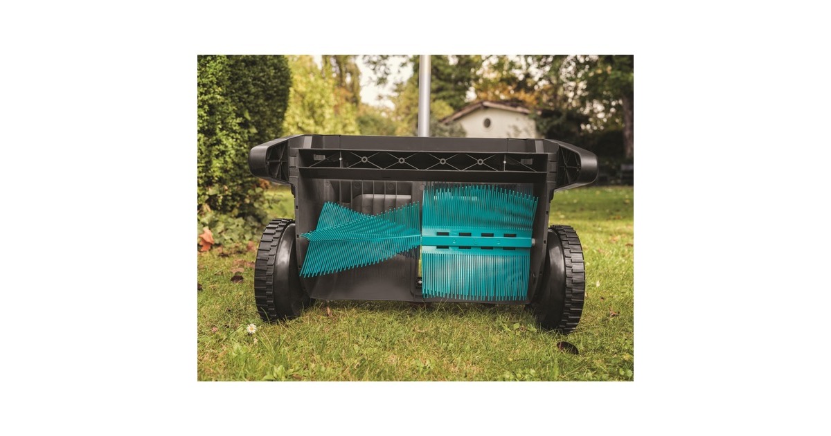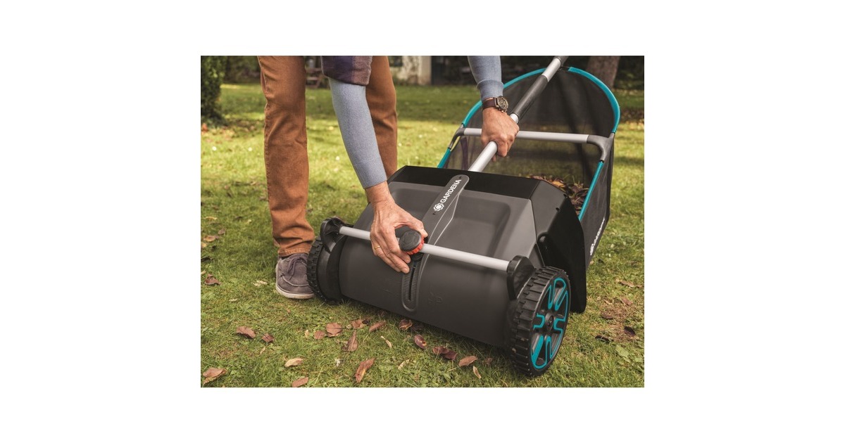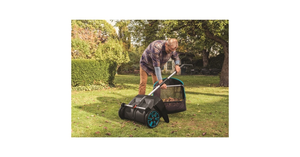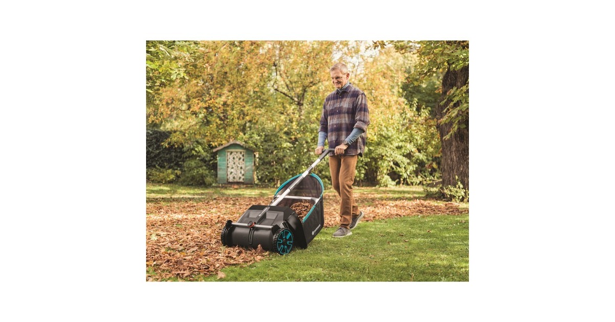 Mit dem GARDENA Laub- und Rasensammler wird das Zusammenrechen und Aufsammeln von Blättern und Grasschnitt ohne Bücken oder schmutzige Hände mühelos und einfach bequem erledigt. Der innovative, rückenfreundliche Laub- und Rasensammler arbeitet ohne Motor, er wird ähnlich einem Spindelmäher geschoben und ist somit leise und umweltfreundlich. Er eignet sich ideal für größere Hof- und Rasenflächen. Die Höhe ist verstellbar und kann an den Untergrund angepasst werden. Die ergonomisch geformten Griffe ermöglichen das leichte Schieben des Sammlers. Die speziell geformten Borsten aus hochwertigem Kunststoff befördern das Laub in den großen Fangsack, der sich zur Entleerung bequem und mühelos entnehmen lässt. Sollten die Bürsten einmal abgenutzt sein, können sie ohne Werkzeug schnell und bequem ausgetauscht werden. Hochkant an die Wand gelehnt, lässt sich der GARDENA Laub- und Rasensammler nach der Arbeit platzsparend aufbewahren.Art.-Nr.: 1589387