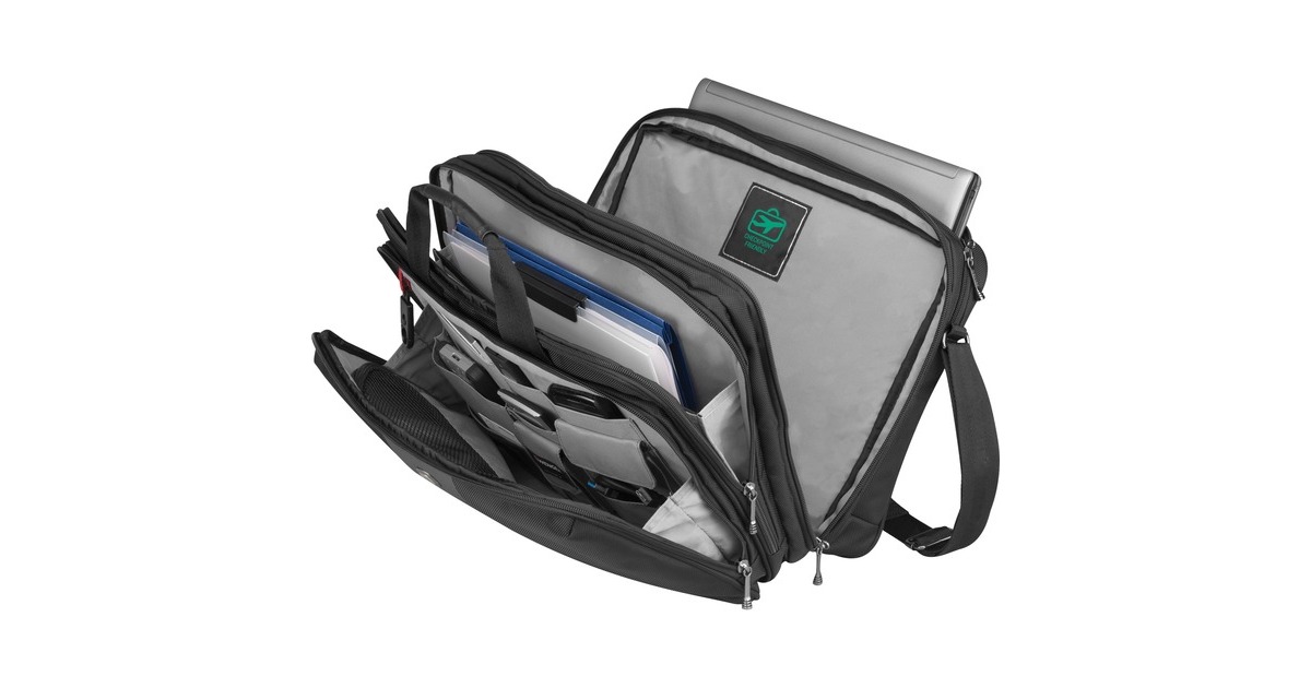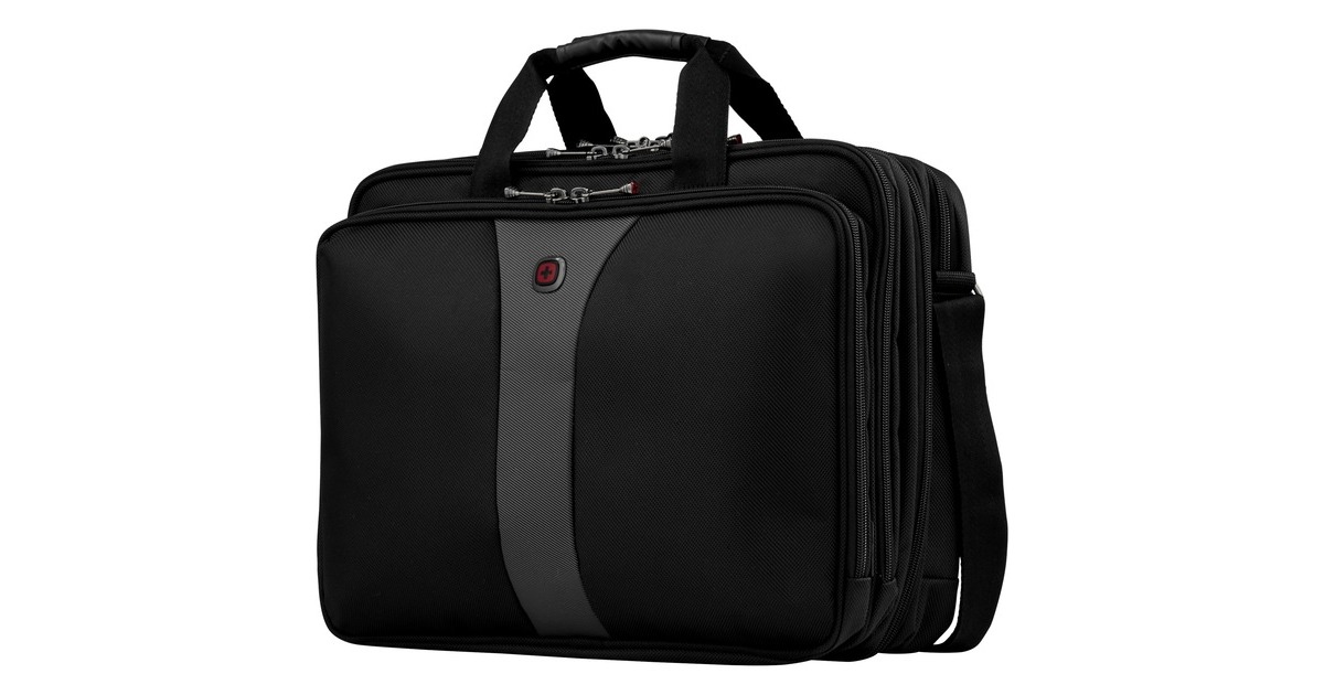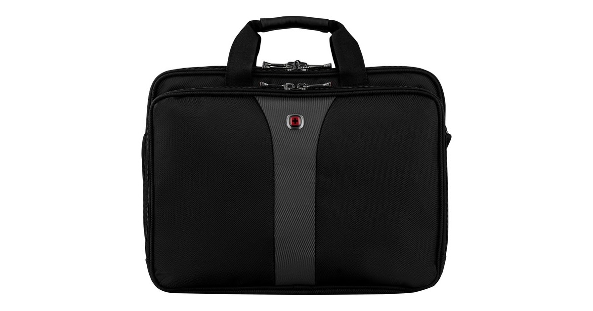 Die Wenger Legacy ist eine elegante Notebooktasche, die einen schnellen Zugriff auf alle Fächer ("Checkpoint friendly") bietet. Im großen Hauptfach mit gepolstertem Swissguard Notebookfach kann ein Notebook bis 17" (43,2 cm) Displaydiagonale untergebracht werden. Die Legacy besitzt ansonsten noch zwei Trennfächer für A4-Dokumente, ein Frontfach für Businesszubehör sowie Handytasche und Schlüsselhalter. Der Softgrip-Tragegriff oder der reißfeste und gepolstete Schultergurt ermöglichen wahlweise den bequemen Transport von Geschäftsutensilien oder Freizeitartikeln.Art.-Nr.: 1199635