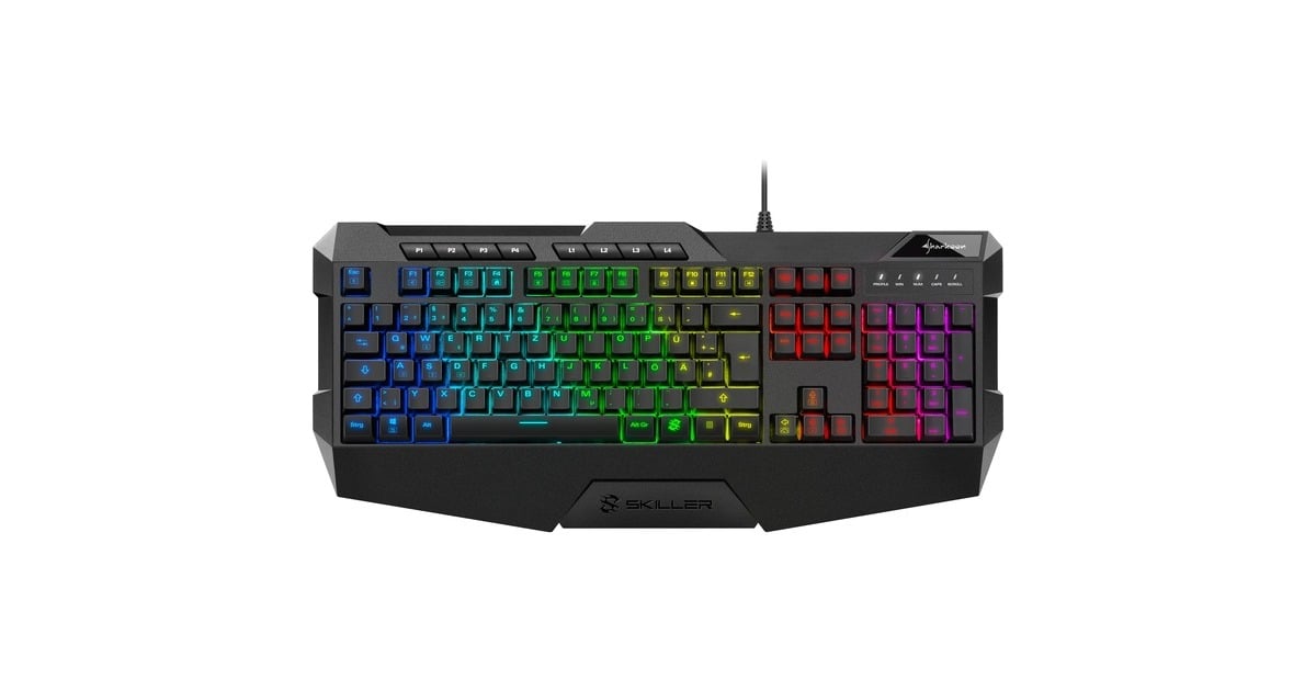 Während der Großteil vergleichbarer Rubber-Dome-Tastaturen nur zwei Tastenanschläge gleichzeitig schafft, besitzt die SKILLER SGK4 volles N-Key-Rollover. Echte SKILLER behalten so mit unbegrenzten, simultanen Tastenanschlägen auch bei komplexen Spielmanövern stets die volle Kontrolle. Anti-Ghosting-Keys und der Gaming-Modus mit deaktivierter Windows-Taste sorgen zusätzlich dafür, dass die Technik dem Spielspaß nicht im Weg steht. Abgerundet wird das perfekte Gaming-Erlebnis durch zahlreiche Funktionstasten mit voreingestellten Multimedia-Aktionen, mit denen sich beim Surfen oder Musikhören die Wartezeit auf das nächste Match gechillt vertreiben lässt. Einen starken Auftritt legt die SGK4 nicht nur technisch hin und zeigt sich durch ihr verspieltes Gehäuse mit zahlreichen Ecken und Kanten in bestem SKILLER-Style. Die integrierte Handballenauflage sorgt zudem nicht nur optisch für den nötigen Schwung, sondern ebenso für Ergonomie und entspannte Spielstunden. Deutlicher ins Auge fällt jedoch die RGB-Hintergrundbeleuchtung mit bis zu 16,8 Millionen Farben, die über vier Beleuchtungstasten oder die Gaming-Software individuell in sechs Zonen angepasst werden kann. In der Software lassen sich nicht nur verschiedene Beleuchtungseffekte einstellen und die Tastenbelegung ändern. Neben der Tastenreaktionszeit und der Polling-Rate sowie diverser Komfortfunktionen lassen sich selbstverständlich auch mit wenigen Klicks Makros programmieren. Anschließend können alle getätigten Einstellungen in bis zu vier Spiel-Profilen auf der Tastatur oder in beliebig vielen Spiel-Profilen auf dem PC gespeichert werden. Es ist ebenfalls möglich verschiedene Spiel-Profile mit Spielen und Programmen zu verknüpfen, sodass die SGK4 automatisch das Profil wechselt, wenn das entsprechende Spiel oder Programm gestartet wird. Die jeweiligen Profile lassen sich nicht nur in der Software, sondern auch mittels dezidierter Profiltasten aus dem Spiel heraus mit einem Handgriff wechseln.Art.-Nr.: 100044116