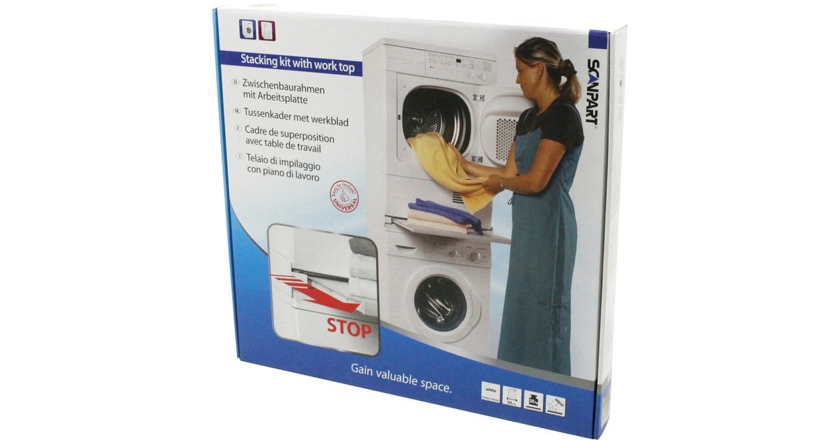 Der Scanpart Zwischenbaurahmen mit Arbeitsplatte ist universal passend für fast alle Geräte und Marken mit 60 cm Breite und eignet sich zum Bau einer Waschmaschinen-Trockner-Säule. Auf der MDF Arbeitsplatte kann zudem Wäsche bis 20 kg problemlos sortiert werden.Art.-Nr.: 1350768