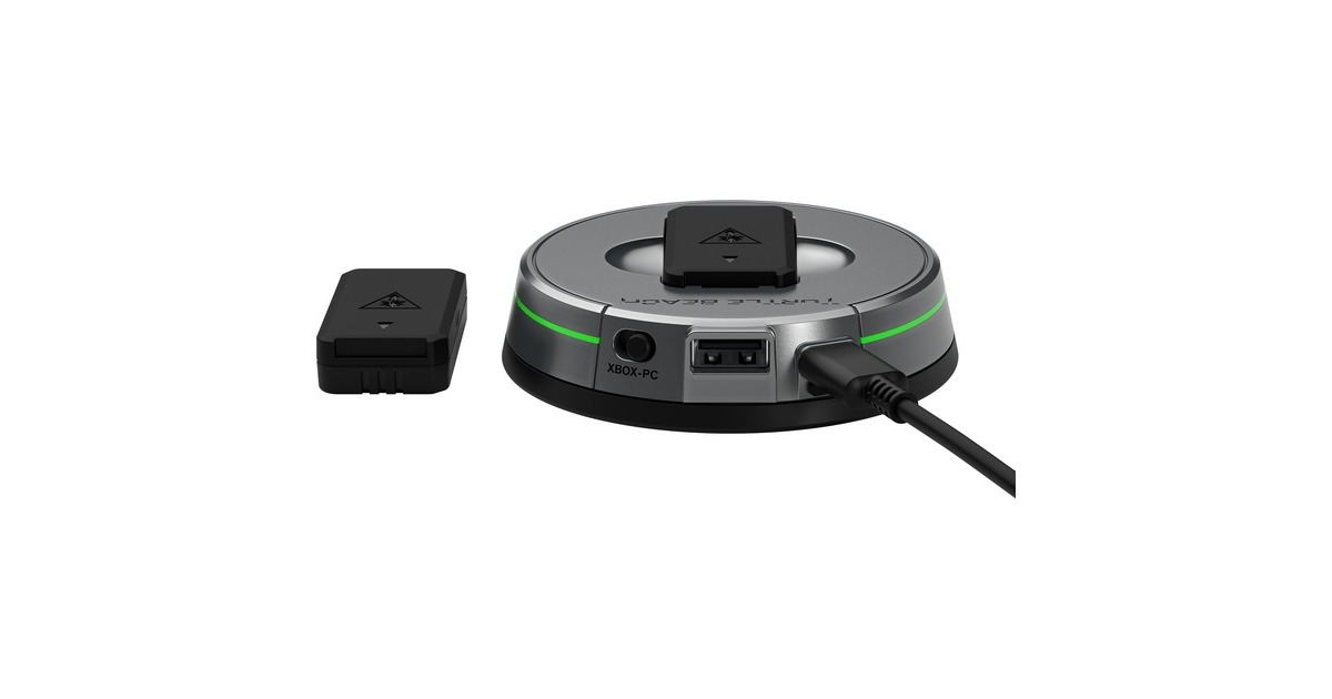 Abnehmbares TruSpeak-Galgenmikrofon, wiederaufladbare Akkus (2x), Sender & Ladestation, USB-C Kabel, USB-C Sendekabel, Tragetasche, Schnellstart-Anleitung, Turtle Beach-Aufkleber |