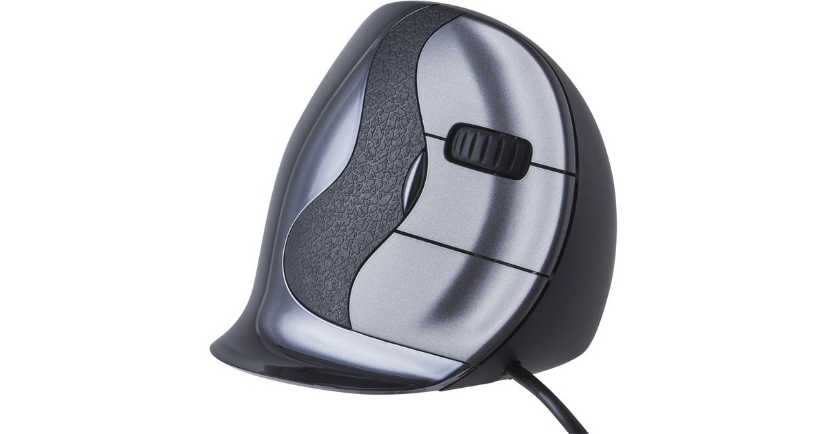 Bei der VerticalMouse D von Evoluent ruhen die Fingerspitzen in einer flachen Rille auf den Tasten. Diese patentierte Innovation sichert die Maus in der Hand und macht Bewegungen viel präziser. Die ergonomische Form unterstützt die Hand in einer Handshake-Position, was Handgelenkschmerzen vorbeugt und lindert. Eine extra breite Lippe entlang der Unterkante verhindert, dass der letzte Finger auf dem Schreibtisch reibt. Intelligent platzierte Daumentasten sind sowohl oben als auch unten auf einer konturierten Daumenauflage leicht erreichbar. Die Tasten der VerticalMouse D lassen sich so konfigurieren, dass fast jede gewünschte Funktion - wie Kopieren oder Einfügen - mit weniger Klicks und Mausbewegungen ausgeführt werden kann. Die Empfindlichkeit variiert dramatisch pro Kerbe als Reaktion auf die Geschwindigkeit, mit der man das Mausrad rollt - von langsam und präzise bis hin zu Hypergeschwindigkeit für das Durchblättern langer Seiten. Auch die Änderung der Bildschirmhelligkeit ist bequem und schnell über das Mausrad möglich.Art.-Nr.: 1661253