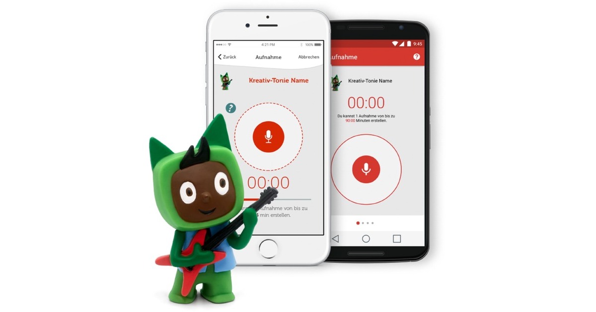 Bei Kreativ-Tonies handelt es sich um Spielfiguren, die gleichzeitig als Hörfigur dienen. Sie werden magnetisch auf die Toniebox gelegt und spielen eigene, aufgenommene Hörabenteuer ab. Um die Aufnahme-Funktion zu nutzen, ist ein kostenfreies Toniecloud-Kundenkonto erforderlich. |