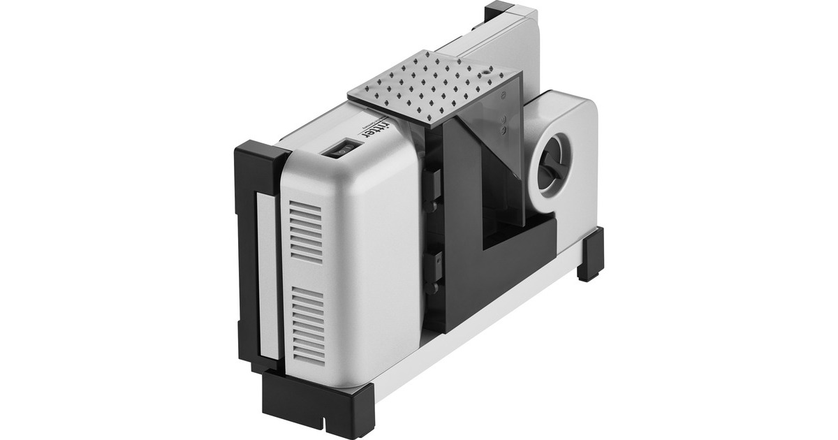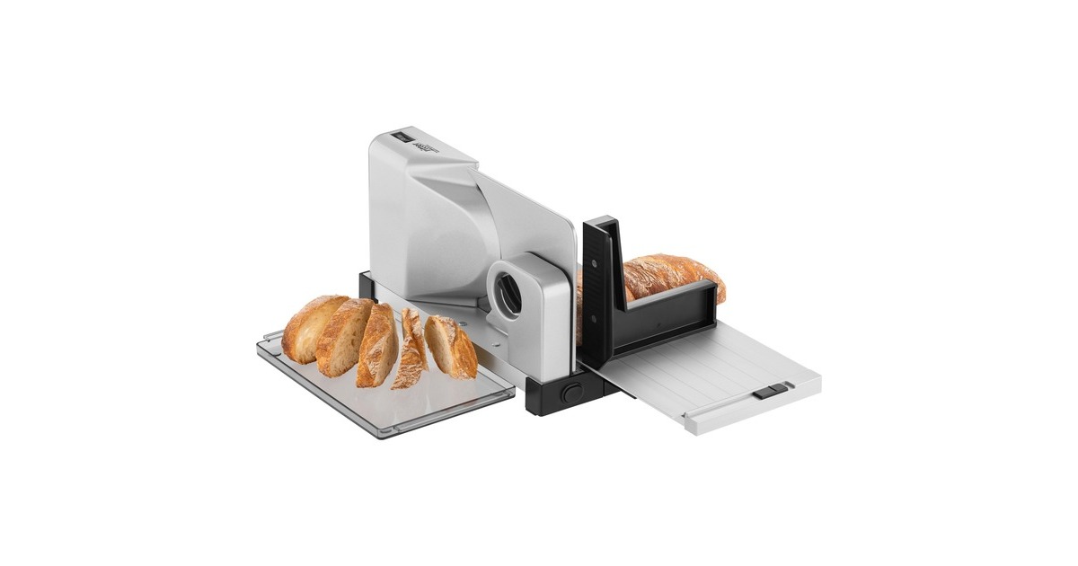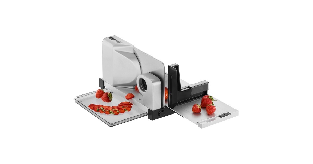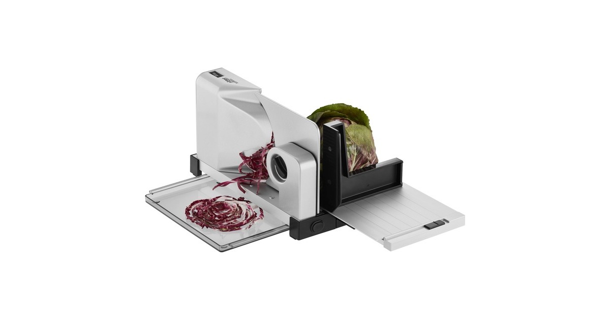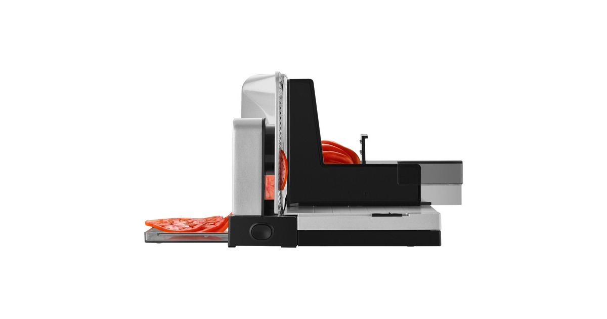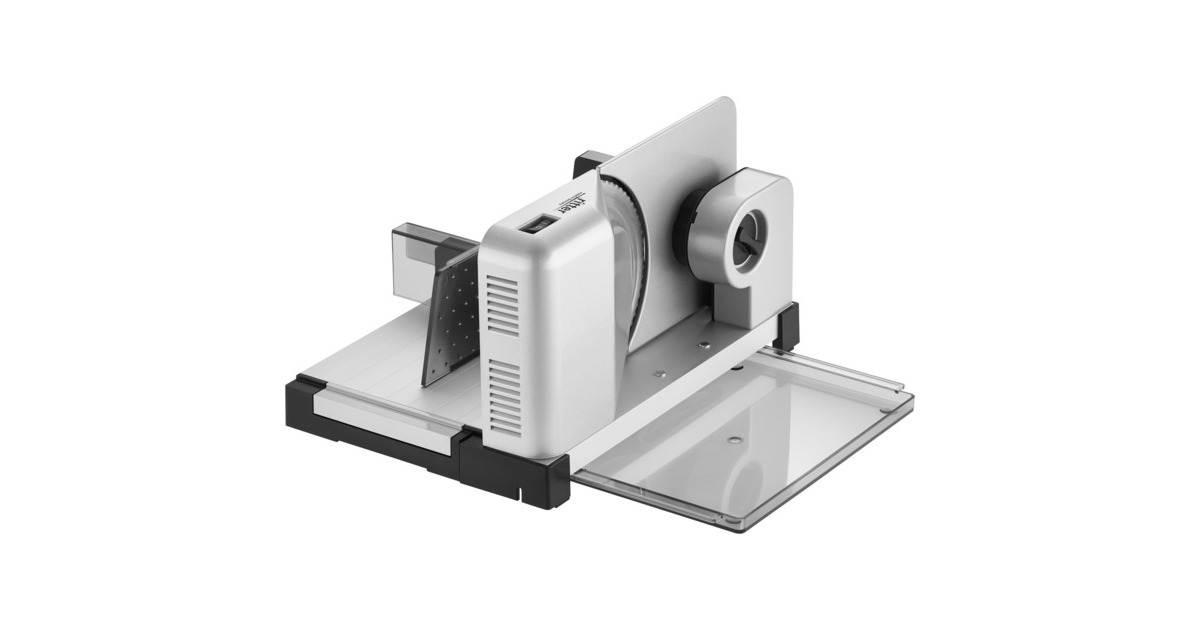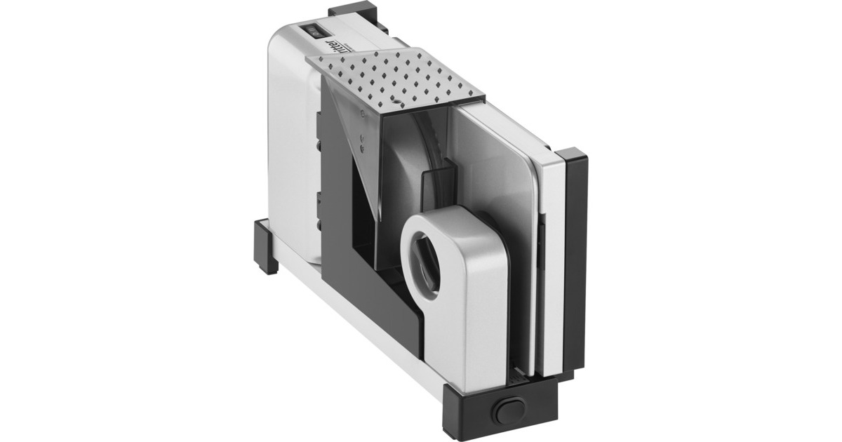 Dauerbetrieb, Momentbetrieb, Schnittstärke stufenlos einstellbar, Schneidgut-Auffangschale, abnehmbarer Schlitten |