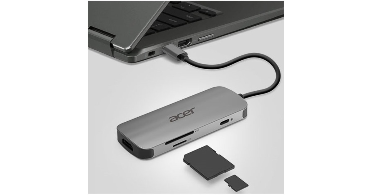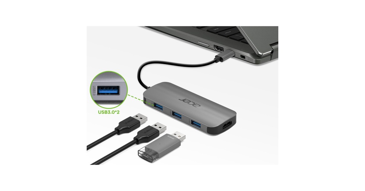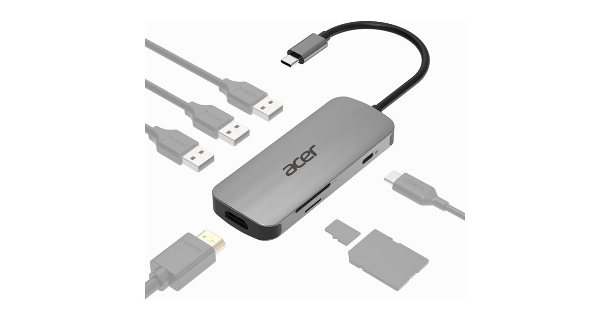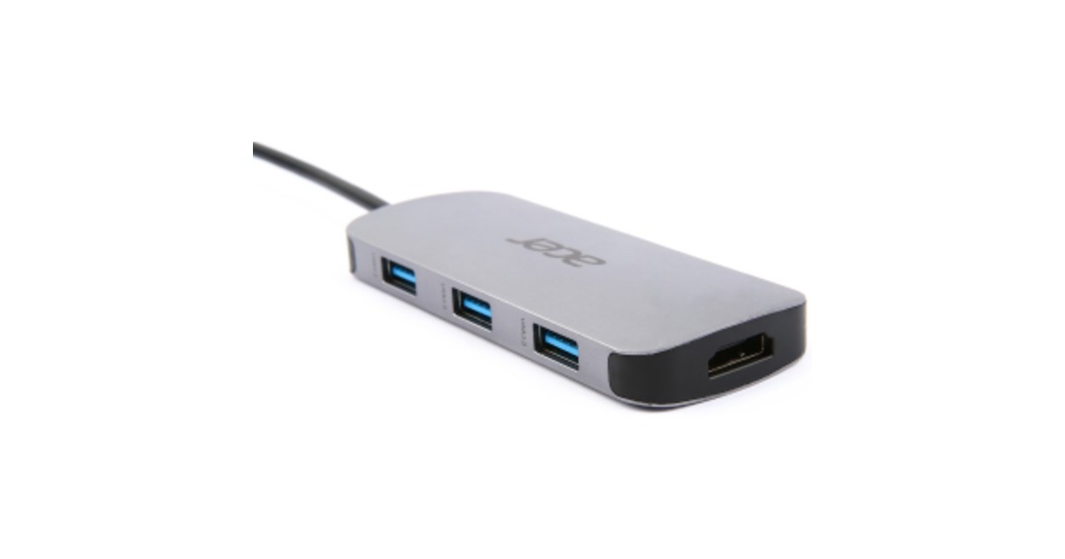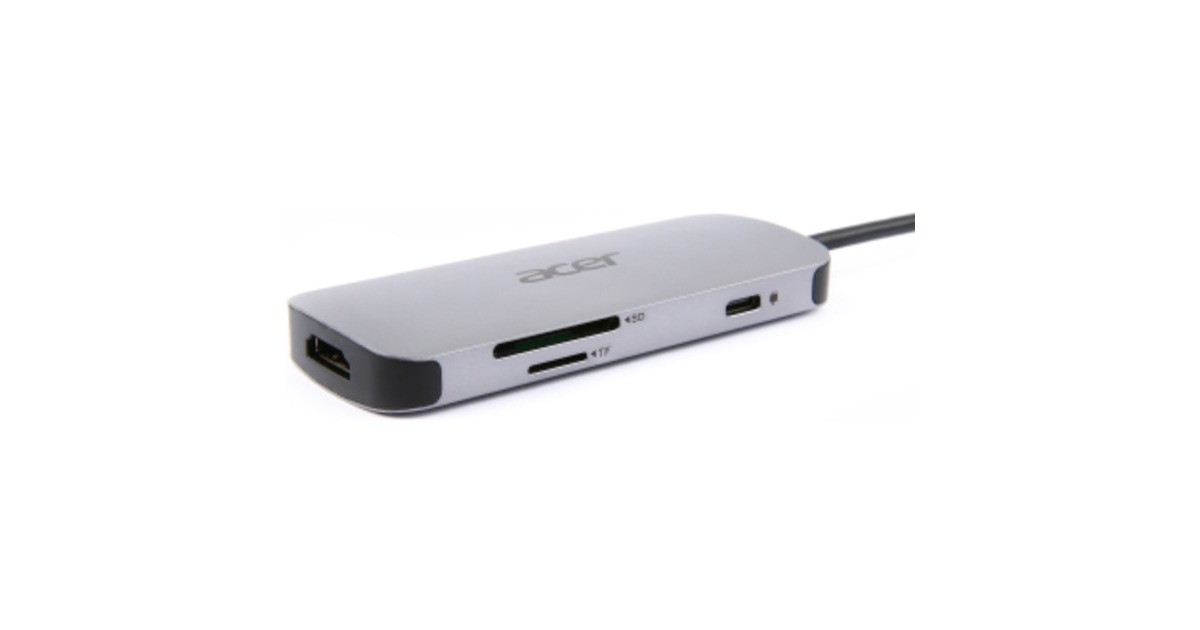 Der Acer Multi-Port Adapter eignet sich für Notebooks mit einem USB-C Port und erweitert deren Anschlüsse um einen HDMI-Ausgang, drei USB-A und einen USB-C Port sowie einen SD- und MicroSD Kartenleser. Über den HDMI-Ausgang kann ein zusätzlicher Monitor betrieben werden, um die Produktivität zu steigern.Art.-Nr.: 1742828