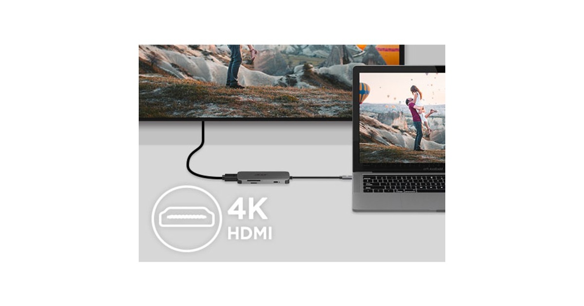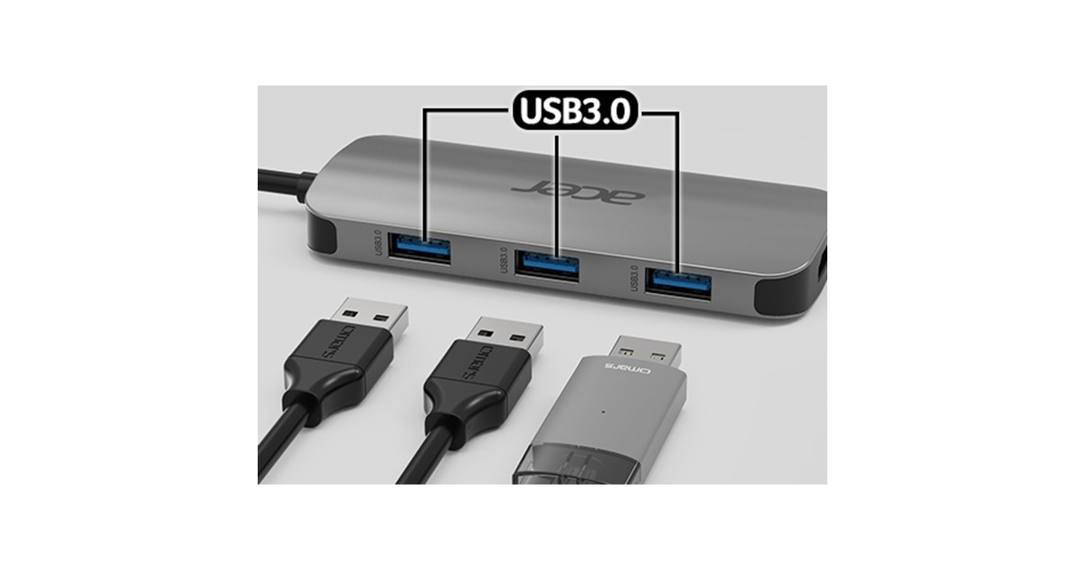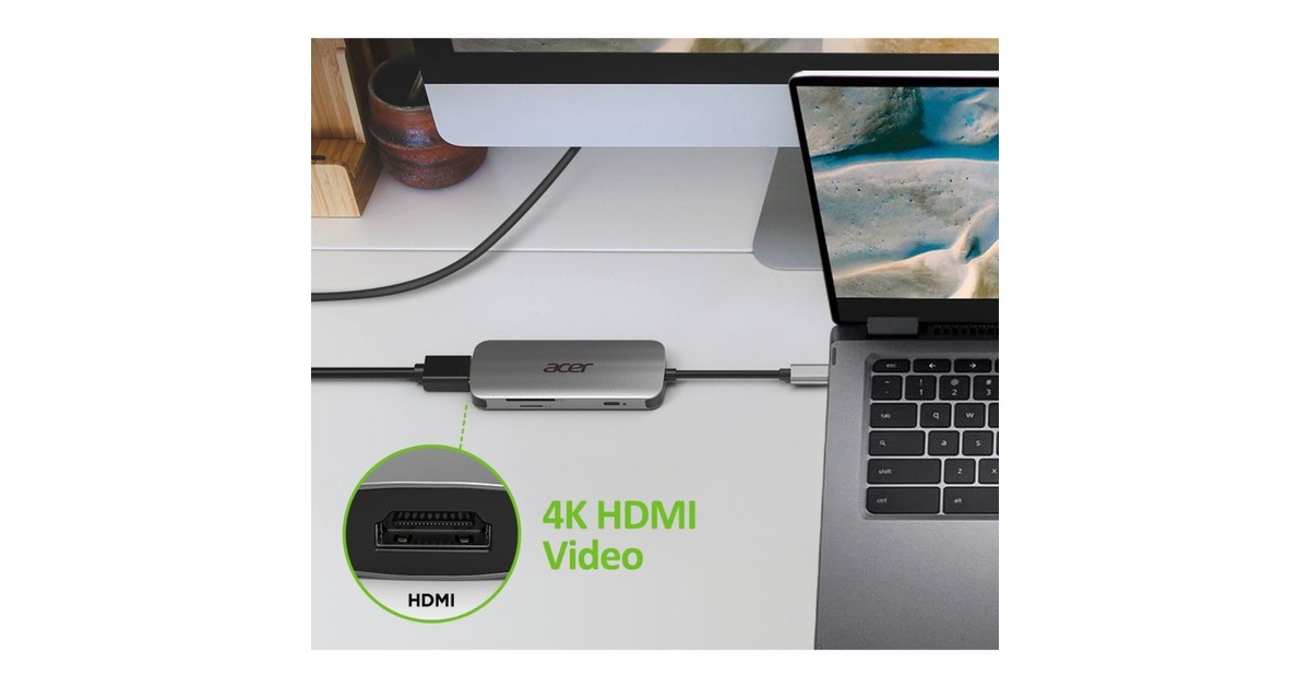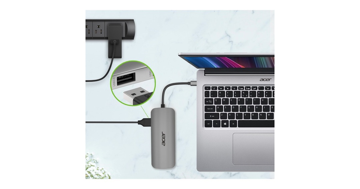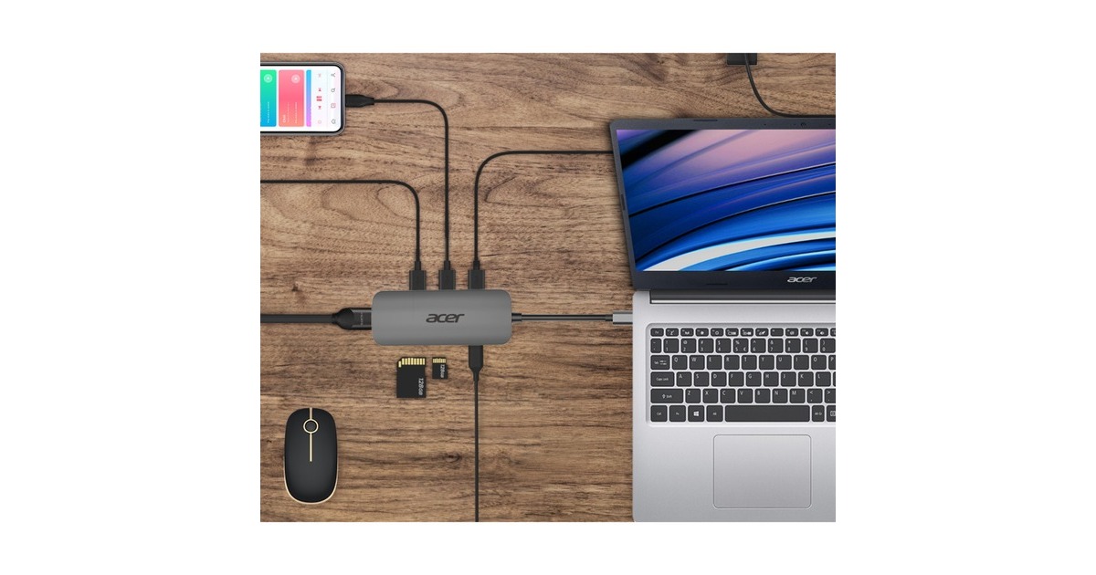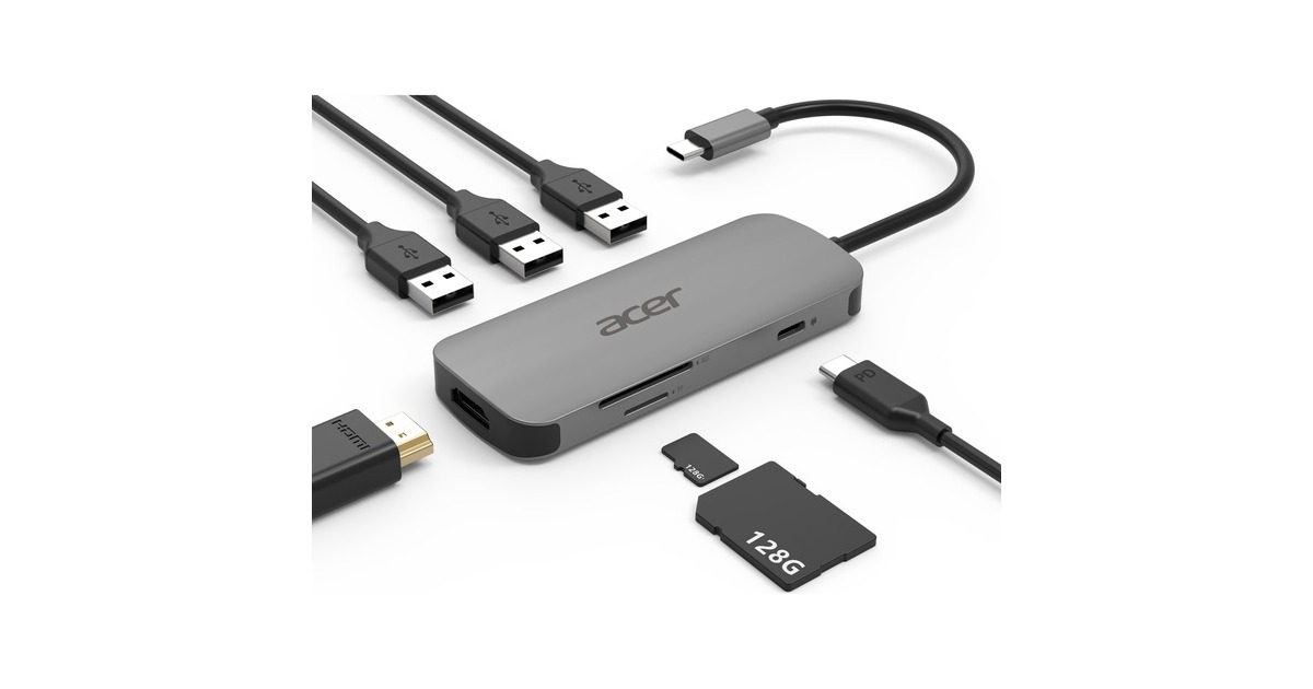 Der Acer Multi-Port Adapter eignet sich für Notebooks mit einem USB-C Port und erweitert deren Anschlüsse um einen HDMI-Ausgang, drei USB-A und einen USB-C Port sowie einen SD- und MicroSD Kartenleser. Über den HDMI-Ausgang kann ein zusätzlicher Monitor betrieben werden, um die Produktivität zu steigern.Art.-Nr.: 1742828
