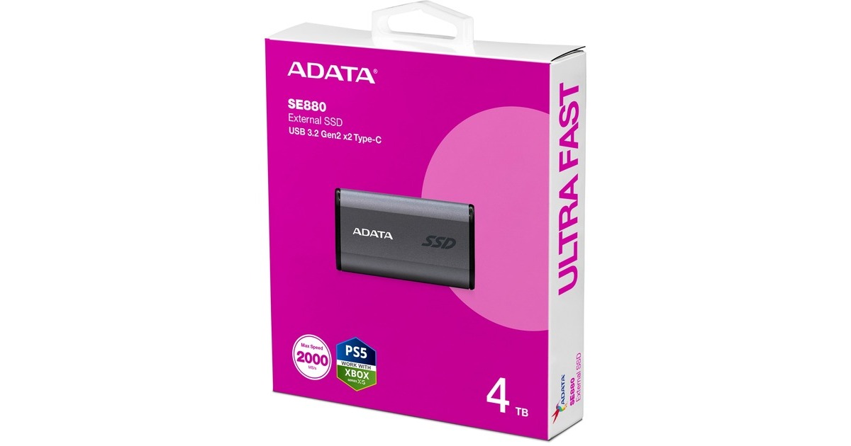 Die externe SSD SE880 von ADATA ist mit ihrem kompakten, leichten Formfaktor auf ultimative Mobilität ausgelegt. Mit einem Volumen von nur 28 cm³ ist die SE880 sogar kleiner als eine AirPods-Hülle und findet problemlos in einer Hand Platz. Ihre kompakte Größe ist unglaublich praktisch für vielbeschäftigte Menschen, die viel unterwegs sind. Die SE880 kann außerdem Lese- und Schreibgeschwindigkeiten von bis zu 2.000 MB/s erreichen, was sie etwa 20 Mal schneller als herkömmliche externe Festplatten macht, die nur etwa 100 MB/s erreichen. So können intensive Aufgaben direkt auf der SE880 durchgeführt werden, sei es A/V-Bearbeitung oder andere Anwendungen. Dank des USB-C-Anschlusses wird die ärgerliche Fummelei wie bei herkömmlichem USB-Anschlüssen vermieden. Kein Raten, einfach einstecken. Jedes Mal!Art.-Nr.: 100024179