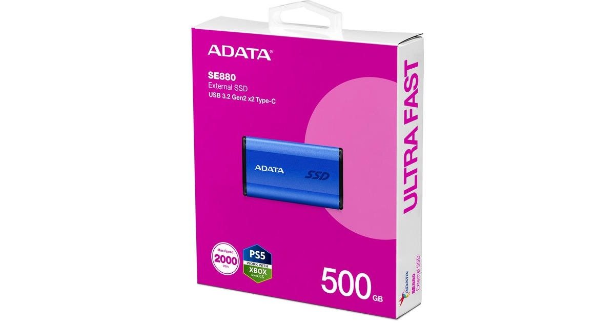 Die externe SSD SE880 von ADATA ist mit ihrem kompakten, leichten Formfaktor auf ultimative Mobilität ausgelegt. Mit einem Volumen von nur 28 cm³ ist die SE880 sogar kleiner als eine AirPods-Hülle und findet problemlos in einer Hand Platz. Ihre kompakte Größe ist unglaublich praktisch für vielbeschäftigte Menschen, die viel unterwegs sind. Die SE880 kann außerdem Lese- und Schreibgeschwindigkeiten von bis zu 2.000 MB/s erreichen, was sie etwa 20 Mal schneller als herkömmliche externe Festplatten macht, die nur etwa 100 MB/s erreichen. So können intensive Aufgaben direkt auf der SE880 durchgeführt werden, sei es A/V-Bearbeitung oder andere Anwendungen. Dank des USB-C-Anschlusses wird die ärgerliche Fummelei wie bei herkömmlichem USB-Anschlüssen vermieden. Kein Raten, einfach einstecken. Jedes Mal!Art.-Nr.: 100045927