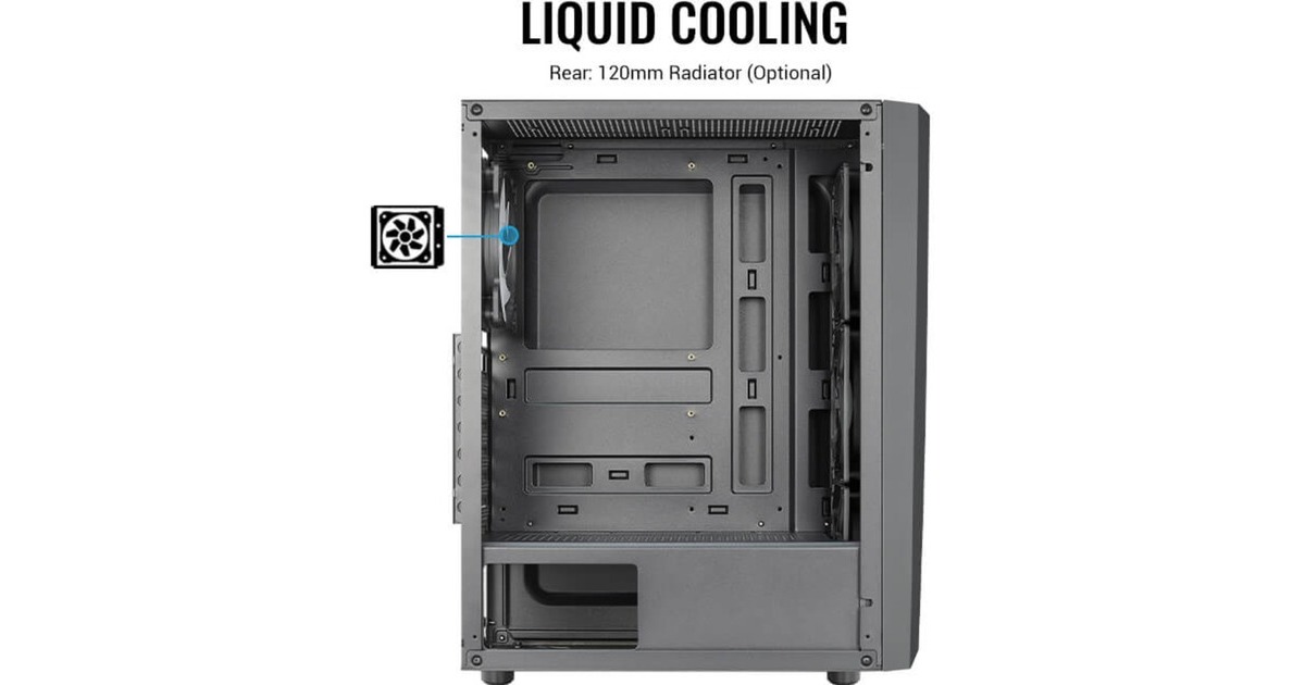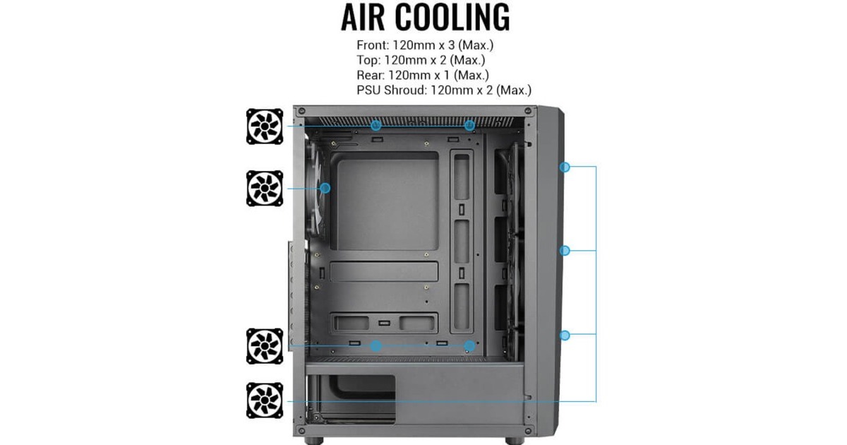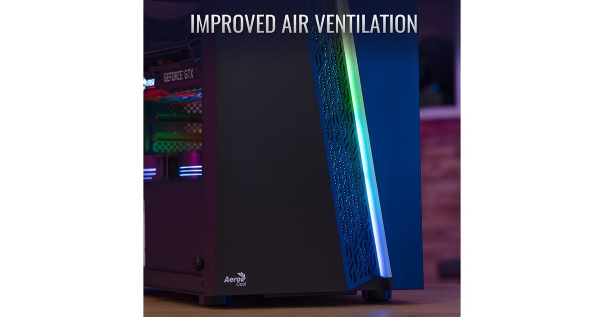 Das Aerocool Blade ist ein Mid-Tower-Gehäuse mit einem einzigartigen RGB-Frontdesign mit integrierten RGB-Beleuchtungsmodi. Belüftungsöffnungen in der Frontblende sorgen für einen erhöhten Luftstrom und eine bessere Luftzirkulation. Ausgestattet ist das Blade mit einer Seitenwand aus gehärtetem Glas, um das Innere des Gehäuses zu präsentieren. Die Frontblende mit Lüftungsschlitzen sorgt für eine optimale Luftzirkulation und Belüftung. Die Lüfterhalterungen an der PSU-Abdeckung unterstützen bis zu zwei 120-mm-Lüfter für eine verbesserte VGA-Kühlung. Das Blade unterstützt Flüssigkeitskühlung auf der Rückseite des Gehäuses und Luftkühlung an der Vorder-, Ober- und Rückseite des Gehäuses. Das Zweikammer-Design sorgt für eine verbesserte Belüftung.Art.-Nr.: 1871527