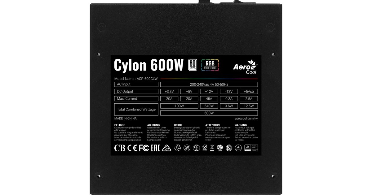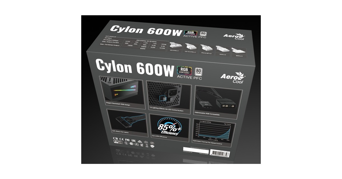Mit einem eleganten Backslash-RGB-LED-Design verbessert das Aerocool Cylon-Netzteil das Look & Feel des Gaming Setup und sorgt gleichzeitig für eine effiziente Stromversorgung des Systems. Man erweckt das System mit 13 einzigartigen Lichteffekten zum Leben, die über einen LED-Control Switch gesteuert werden können. Das Netzteil ist kompatibel mit adressierbarer RGB-Beleuchtung über 3-Pin 5V RGB-Anschluss. Des weiteren ist das Cylon 80 Plus 230V EU-Standard zertifiziert für bis zu 85%+ Effizienz.Art.-Nr.: 1675658