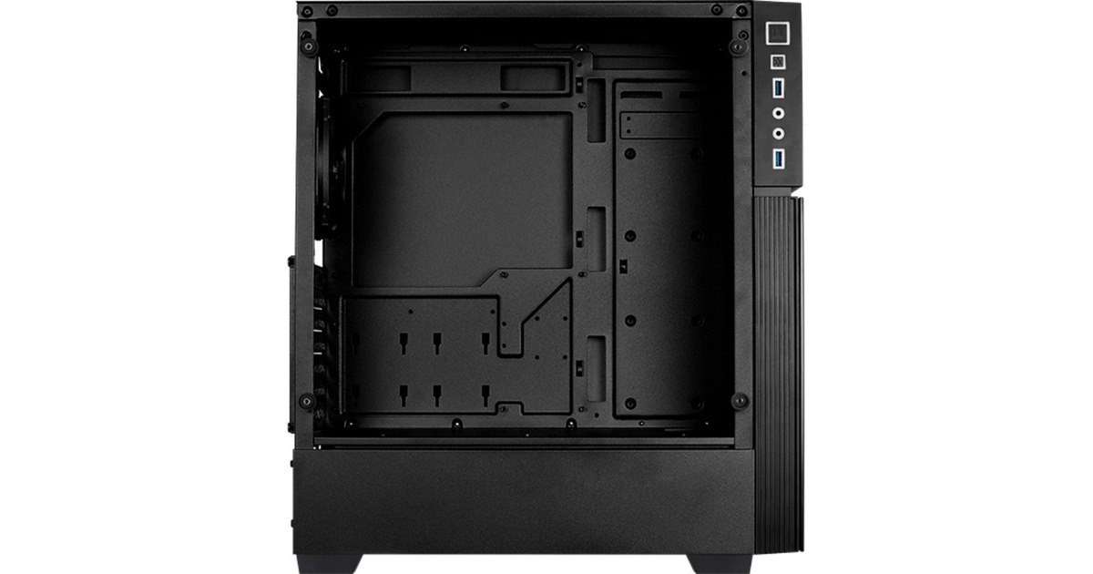 Das schwarze Midi-Tower-Gehäuse Playa von Aerocool kommt in einem schicken Design, einer Netzteilabdeckung und großzügigen Optionen für den Einbau von Lüftern für eine optimale Kühlung der Komponenten. Die Front besitzt einen LED-Strip und auch die Schalter des I/O-Panels sind beleuchtet. Die Steuerung der RGB-LED-Beleuchtung erfolgt über einen Schalter. Das Playa bietet viel Platz für ein Mini-ITX-, Micro-ATX- oder ATX-Mainboard und auch lange Grafikkarten bis 376 mm können verbaut werden.Art.-Nr.: 1892321