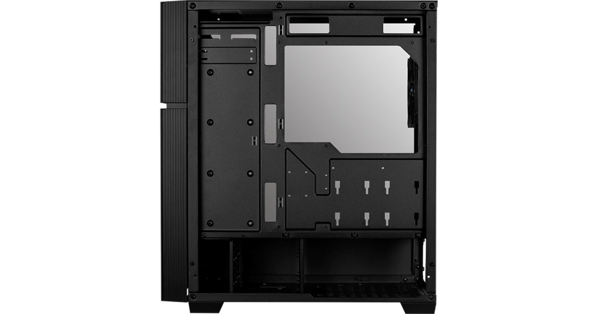 Netzteilabdeckung, Seitenteil aus Tempered Glass, Front aus Tempered Glass mit RGB-LED-Streifen, 2x 140-mm- oder 2x 120-mm-Lüfter an der Oberseite einbaubar |