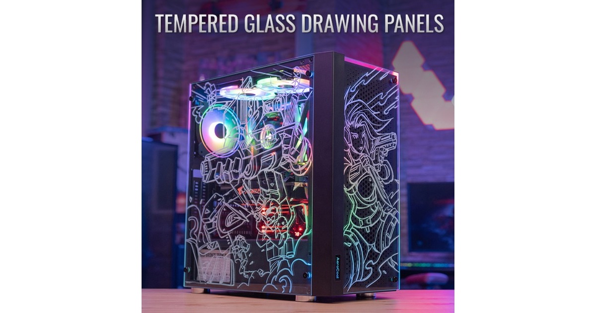 ART meets PC: Bei Aerocool Skribble kann man der Kreativität freien Lauf und seinen ganz persönlichen PC entwerfen, der wirklich einzigartig ist. Mit dem mitgelieferten Flüssigkreidemarker bemalbaren ARGB-beleuchteten Front- und Seitentafeln aus gehärtetem Glas erweckt man die eigene Kunst zum Leben. |