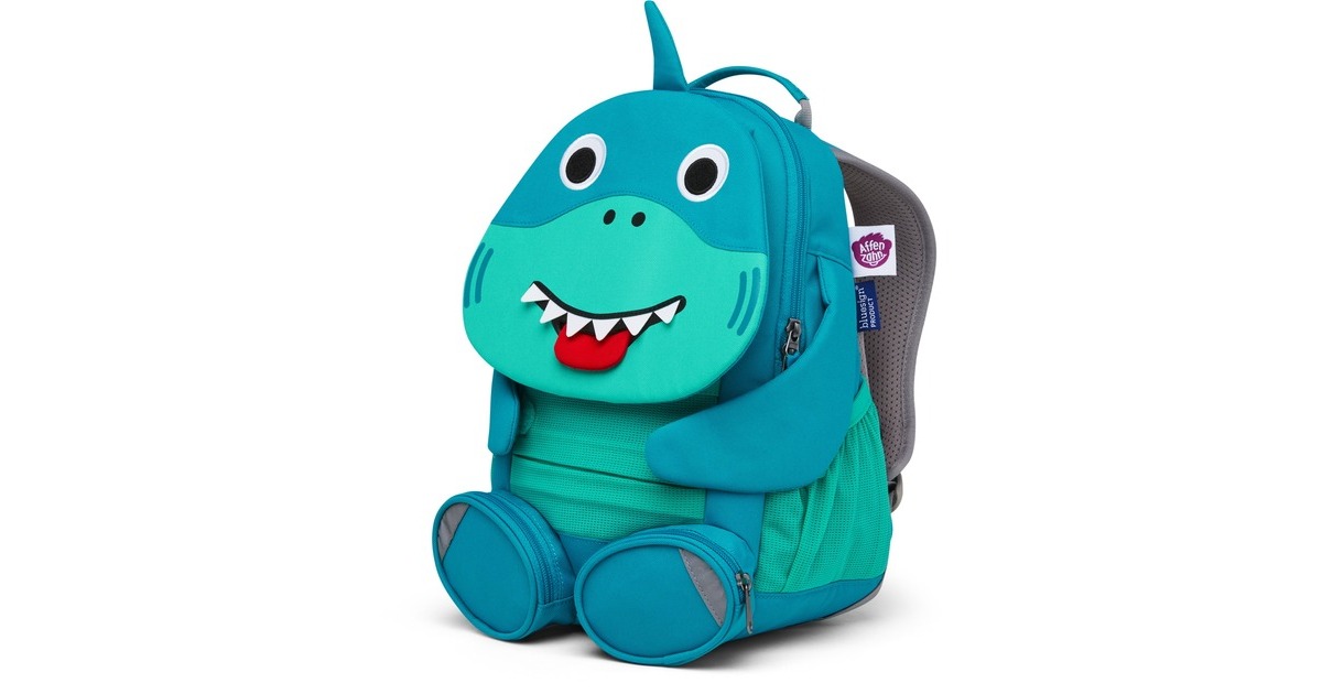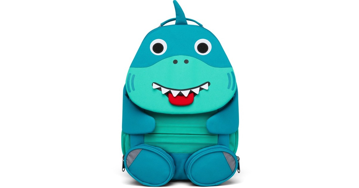 Der Kindergarten-Rucksack Großer Freund Hai bietet mit seinem Volumen von ca. 8 Litern ausreichend Platz für alles, was im Kindergarten oder bei Ausflügen benötigt wird. Spielzeuge, Verpflegung oder Bücher finden im Hauptfach Platz. In den Füßen ist jeweils eine Tasche untergebracht, sodass wichtige Utensilien schnell bei der Hand oder gefundene Schätze gut versteckt sind. Die beiden Außentaschen nehmen jeweils eine Trinkflasche auf, die von den Klett-Pfoten sicher festgehalten werden. Am Bauch ist eine weitere Tasche angebracht. Damit der Rucksack richtig sitzt sind die Schulterträger weich gepolstert und verstellbar, hinzu kommt ein verstellbarer Brustgurt mit Brustschnalle, die sich dank der gelben Druckpunkte kinderleicht öffnen lässt. Sollte es einmal dunkel werden, sorgen Reflektoren für Sichtbarkeit. Der verstärkte Tragegriff bietet sicheren Halt an der Kindergarten-Garderoben und die einzigartige Ziehzunge kann mit dem Namen oder anderen Daten beschriftet oder auch mit einem Foto versehen werden.Art.-Nr.: 1837687