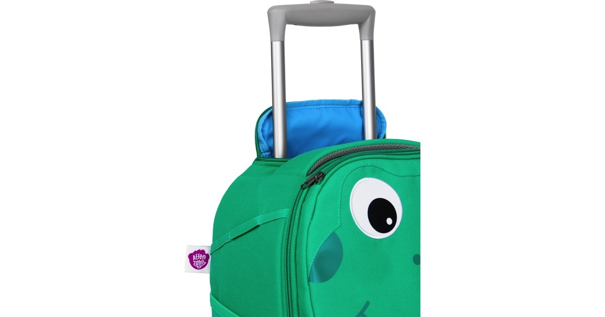 Damit es auch für die kleinsten kindgerecht auf die Urlaubsreise gehen kann, gibt es den Kinderkoffer Finn Frosch von Affenzahn. Natürlich auch bestens für den Wochenend-Besuch bei den Großeltern oder Freunden geeignet. Mit zwei Rollen, einer 3-fach höhenverstellbaren Trolleystange, einem Tragegriff und einem Schultertragegurt lässt er sich in jeder Situation bestmöglich befördern. Zum Verstauen der Kleidung und anderer Utensilien bietet der Kinderkoffer ein großes Hauptfach mit Reißverschluss und einem extra Innenfach, zwei Außentaschen sowie einer Kopftasche vorne. Damit Jeder gleich weiß, wessen Freund Finn ist versteckt sich in der Zunge ein Namenschild.Art.-Nr.: 1470933