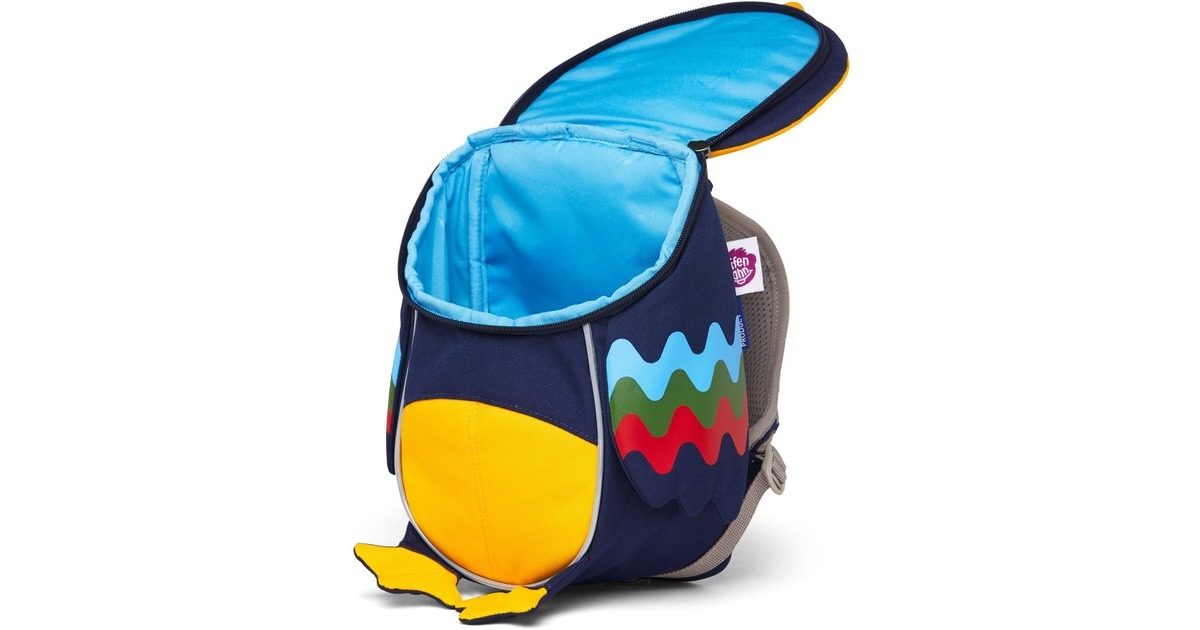 Der Kindergarten-Rucksack Kleiner Freund Tukan bietet mit seinem Volumen von etwa 4 Litern ausreichend Platz für alles, was Kindergarten-Einsteiger ab einem Jahr brauchen. Spielzeuge, Verpflegung oder kleine Bücher finden im Hauptfach Platz. Damit der Rucksack richtig sitzt sind die Schulterträger weich gepolstert und verstellbar, hinzu kommt ein verstellbarer Brustgurt mit Brustschnalle, die sich dank der gelben Druckpunkte kinderleicht öffnen lässt. Sollte es einmal dunkel werden, sorgen Reflektoren für Sichtbarkeit. Der verstärkte Tragegriff bietet sicheren Halt an der Kindergarten-Garderoben und die einzigartige Ziehzunge kann mit dem Namen oder anderen Daten beschriftet oder auch mit einem Foto versehen werden.Art.-Nr.: 1866659