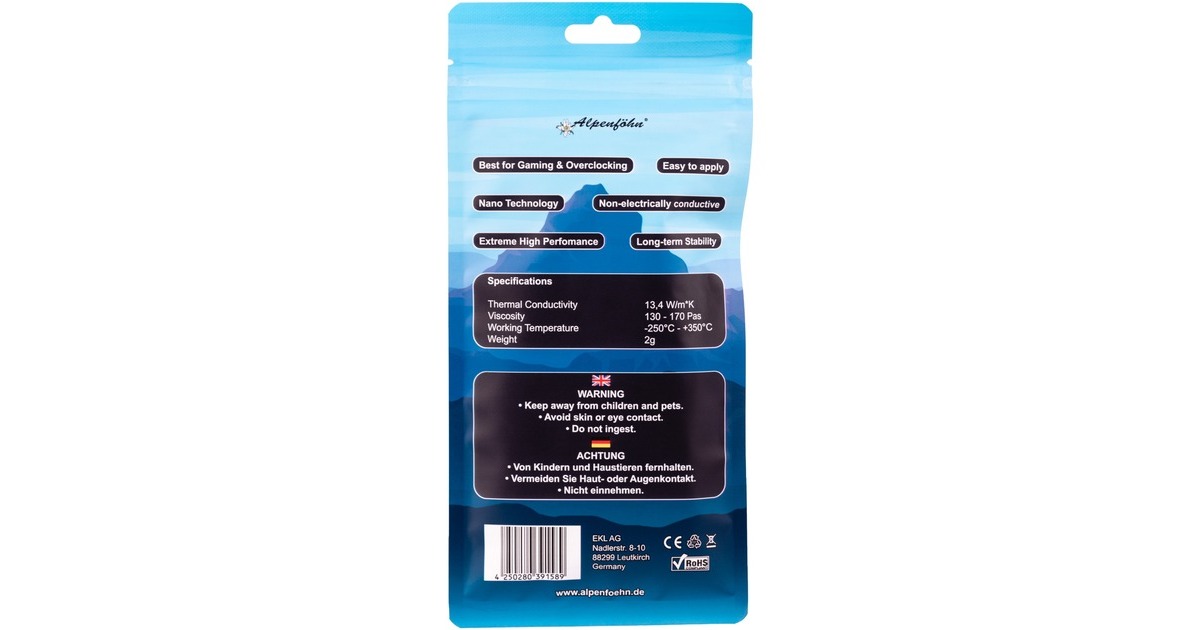 Die Premium Wärmeleitpaste Alpenföhn Permafrost 2 ist durch ihre hohe Wärmeleitfähigkeit (13,4 W/m*K) hervorragend geeignet für Gaming und Overclocking. Das umfangreiche Zubehör ermöglicht einfaches und sauberes Auftragen der Permafrost 2 Wärmeleitpaste auch für Anfänger. Die Wärmeleitpaste ist elektronisch nicht leitend und ist sowohl mit Kühlern aus Aluminium als auch aus Kupfer verwendbar. Durch eine langanhaltende Stabilität der Viskosität kann die Permafrost 2 auch bei extrem niedrigen und hohen Temperaturen eingesetzt werden. Art.-Nr.: 1615967