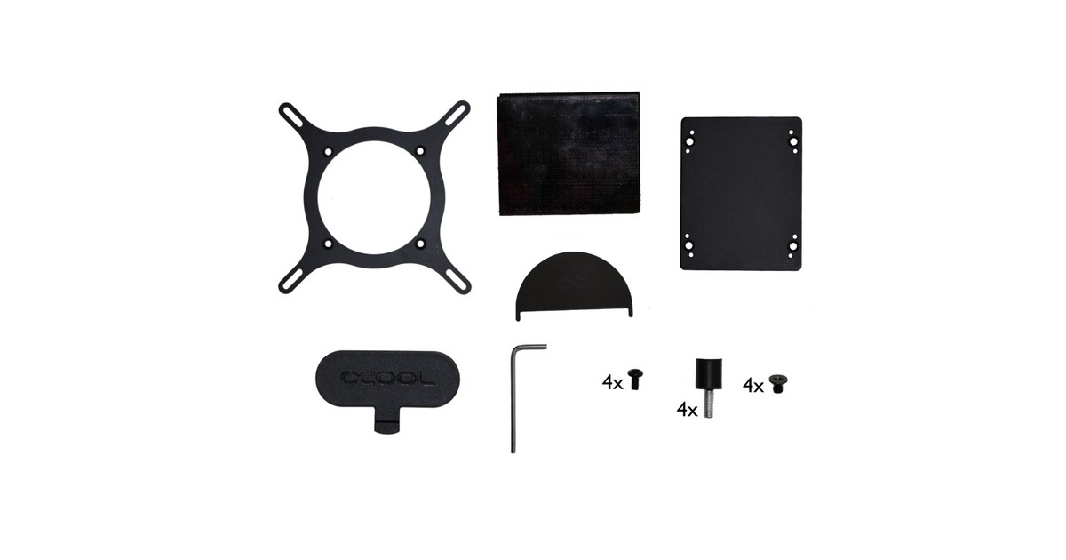 1x Verschlussschraube, 1x Werkzeug für Verschlussschraube, 1x Montageblech, 1x Klettmatte, 1x Halterung für Montage auf Lüfterplätze , 4x Vibrationsdämpfer, 4x M3x5 Schrauben, 4x M4x5 Schrauben, 1x Eisball Digital RGB Beleuchtungsring, 1x Digital RGB-Controller, 1x Digital RGB-Adapter, 1x Eispumpe VPP755 V.3 |