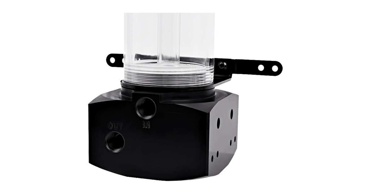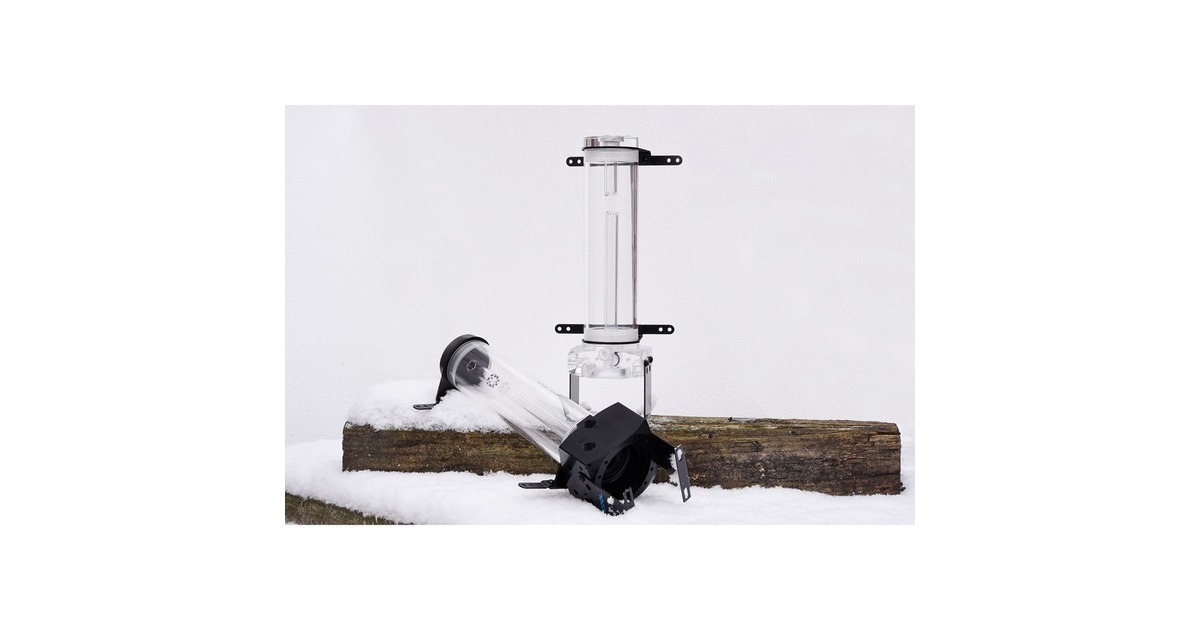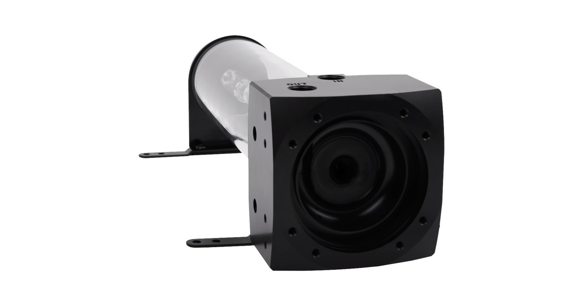 Bei dem AlphaCool Eisbecher D5 erfolgt die Befestigung der Pumpe durch einen Montagering, der die Pumpe mit acht Schrauben festhält. Der Ausgleichsbehäter ist mit unterschiedlichen Funktionen ausgestattet. Dank der ganz unten im Ausgleichsbehälter sitzende Bubble Down wird verhindert, dass sich ein Sog oder ein Strudel bilden kann. Das spezielle Steigröhrchen sorgt für einen sogenannten Lighttower Effekt. Die Füße des AlphaCool Eisbecher D5 verleihen ihm einen festen Stand. Die Halterungen ober- und unterhalb des Rohrs werden genutzt um das Gerät in dem Gehäuse zu befestigen. Soll der Ausgleichsbehälter nicht an Lüfterplätze befestigt werden, stehen zusätzlich noch drei M4 Gewinde je Halterung zur Verfügung. Werden die Halterungen gar nicht benötigt, kann man sie auch einfach abnehmen. Wenn in dem Gehäuse Platz in den 3,5 Zoll Festplattenschächten ist, sind dafür Gewinde in dem Punmpensockel vorgesehen.Art.-Nr.: 1268245