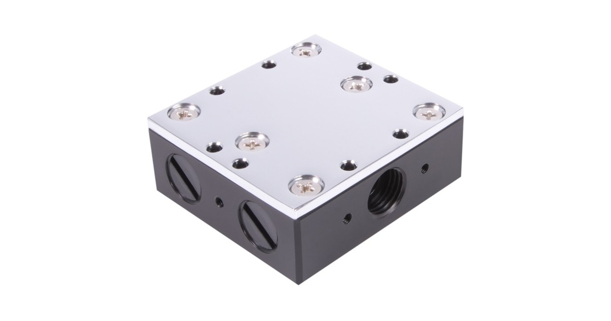 Die Alphacool ES Distro Plates sorgen für Ordnung im System und erleichtern den Austausch von Komponenten im Zusammenspiel mit Schnellverschlüssen. Sie bieten umfangreiche Montagemöglichkeiten und sind die ideale Grundlage für jedes Enterprise System das mit einer Wasserkühlung ausgestattet werden soll. Die ES Distro Plates lassen sich vielseitig montieren. Die einfachste und schnellste Variante ist die Montage über den beiliegenden selbstklebenden Klettverschluss. Dabei wird eine Seite direkt an die Distro Plate geklebt, die andere Seite an eine beliebige Stelle im Gehäuse. Danach kann man die Distro Plate einfach auf den Klettverschluss draufsetzen. Im Lieferumfang sind spezielle Füße und Montagerahmen enthalten, die mehrere Einbauoptionen bieten. Mit dem Montagezubehör lässt sich die Distro Plate an jeden 120 oder 140 mm Lüfterplatz montieren. Die beiliegenden Füße bieten ebenfalls viele Montageoptionen, darunter auch eine Vertikale Montagemöglichkeit an einem einzelnen Fuß. Diverse Gewindebohrungen auf den Seiten und auf der Rückseite der ES Distro Plate bieten weitere direkte Montagemöglichkeiten, darunter auch angepasste Bohrungen für spezielle Montageschienen in den Serverracks von Alphacool. Die ES Distro Plate C2 besitzt insgesamt 10 Anschlussmöglichkeiten im Format G1/4 mit 5 mm tiefen Gewinden. Davon befinden sich jeweils 2 Anschlüsse auf jeder langen Seite, 4 auf der Oberseite und jeweils ein Anschlussgewinde an jeder Stirnseite. Man muss jedoch beachten, dass alle Anschlüsse Paarweise angelegt sind. Man kann also nur den oberen oder den seitlichen Anschluss verwenden. Die Ausnahme bilden zwei jeweils drei Anschlussmöglichkeiten an den Stirnseiten. Hier kann jeweils nur der seitliche, obere oder der Anschluss an der Stirnseite verwendet werden. Die genauen Möglichkeiten werden in der Anleitung bildlich dargestellt. Durch diese Konfiguration können alle Komponenten im Wasserkreislauf sehr leicht mit der Distro Plate verbunden werden. Natürlich lassen sich auch mehrere ES Distro Plates in Reihe zusammenschließen. Besonders in engen Servergehäusen ist es unerlässlich einen sauberen Aufbau der Wasserkühlung zu ermöglichen. Wer sich den Wasserkreislauf vorher einmal aufzeichnet, wird schnell den idealen Platz für die Distro Plate finden. Ein idealer Platz ist, wenn alle Schläuche möglichst gerade verlegt werden können. Denn zu engen Biegeradien sollten bei Schläuchen vermieden werden. Wenn Komponenten ausgetauscht werden sollen, ist die Verwendung der Alphacool ES Schnellverschlüsse mit Außengewinde zu empfehlen. So können alle Komponenten im Kreislauf direkt an der Distro Plate mit Schnellverschlüssen montiert werden. Dadurch ist der Austausch von z.B. einem oder mehrere Kühler sehr schnell möglich. Auch weitere oder größerer Radiatoren lassen sich leicht einbinden bzw. austauschen.Art.-Nr.: 1833525