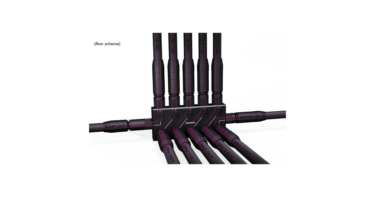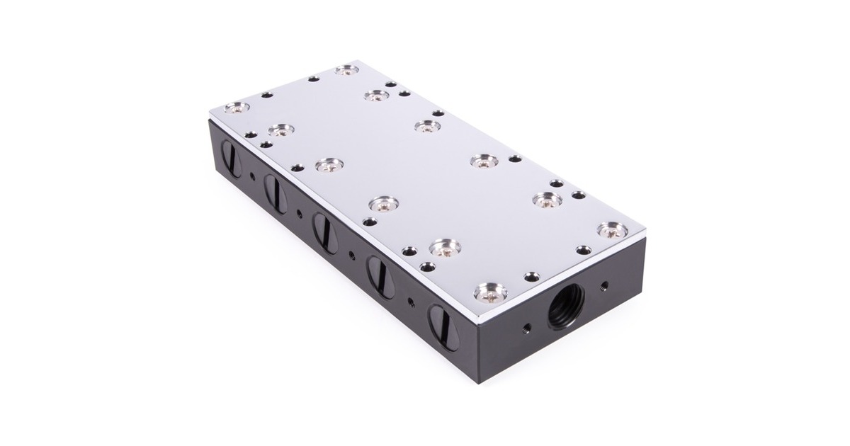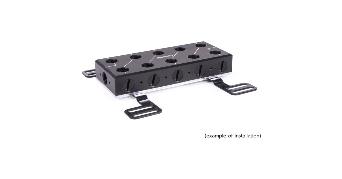 Die Alphacool ES Distro Plates sorgen für Ordnung im System und erleichtern den Austausch von Komponenten im Zusammenspiel mit Schnellverschlüssen. Sie bieten umfangreiche Montagemöglichkeiten und sind die ideale Grundlage für jedes Enterprise System das mit einer Wasserkühlung ausgestattet werden soll. Die ES Distro Plates lassen sich vielseitig montieren. Die einfachste und schnellste Variante ist die Montage über den beiliegenden selbstklebenden Klettverschluss. Dabei wird eine Seite direkt an die Distro Plate geklebt, die andere Seite an eine beliebige Stelle im Gehäuse. Danach kann man die Distro Plate einfach auf den Klettverschluss draufsetzen. Im Lieferumfang sind spezielle Füße und Montagerahmen enthalten, die mehrere Einbauoptionen bieten. Mit dem Montagezubehör lässt sich die Distro Plate an jeden 120 oder 140 mm Lüfterplatz montieren. Die beiliegenden Füße bieten ebenfalls viele Montageoptionen, darunter auch eine Vertikale Montagemöglichkeit an einem einzelnen Fuß. Diverse Gewindebohrungen auf den Seiten und auf der Rückseite der ES Distro Plate bieten weitere direkte Montagemöglichkeiten, darunter auch angepasste Bohrungen für spezielle Montageschienen in den Serverracks von Alphacool. Die ES Distro Plate C5 besitzt insgesamt 22 Anschlussmöglichkeiten im Format G1/4 mit 5 mm tiefen Gewinden. Davon befinden sich jeweils 5 Anschlüsse auf jeder langen Seite, 10 auf der Oberseite und jeweils ein Anschlussgewinde an jeder Stirnseite. Man muss jedoch beachten, dass alle Anschlüsse Paarweise angelegt sind. Man kann also nur den oberen oder den seitlichen Anschluss verwenden. Die Ausnahme bilden zwei jeweils drei Anschlussmöglichkeiten an den Stirnseiten. Hier kann jeweils nur der seitliche, obere oder der Anschluss an der Stirnseite verwendet werden. Die genauen Möglichkeiten werden in der Anleitung bildlich dargestellt. Durch diese Konfiguration können alle Komponenten im Wasserkreislauf sehr leicht mit der Distro Plate verbunden werden. Natürlich lassen sich auch mehrere ES Distro Plates in Reihe zusammenschließen. Besonders in engen Servergehäusen ist es unerlässlich einen sauberen Aufbau der Wasserkühlung zu ermöglichen. Wer sich den Wasserkreislauf vorher einmal aufzeichnet, wird schnell den idealen Platz für die Distro Plate finden. Ein idealer Platz ist, wenn alle Schläuche möglichst gerade verlegt werden können. Denn zu engen Biegeradien sollten bei Schläuchen vermieden werden. Wenn Komponenten ausgetauscht werden sollen, ist die Verwendung der Alphacool ES Schnellverschlüsse mit Außengewinde zu empfehlen. So können alle Komponenten im Kreislauf direkt an der Distro Plate mit Schnellverschlüssen montiert werden. Dadurch ist der Austausch von z.B. einem oder mehrere Kühler sehr schnell möglich. Auch weitere oder größerer Radiatoren lassen sich leicht einbinden bzw. austauschen.Art.-Nr.: 1833527