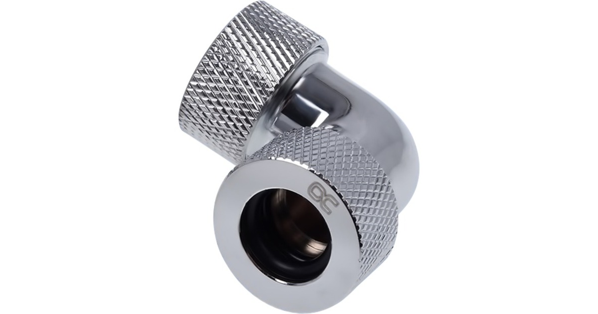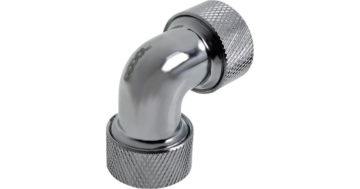 1 x Alphacool HT 13mm HardTube Anschraubtülle 90° L-Verbinder für Acryl- Messingrohre- gerändelt - Chrome |