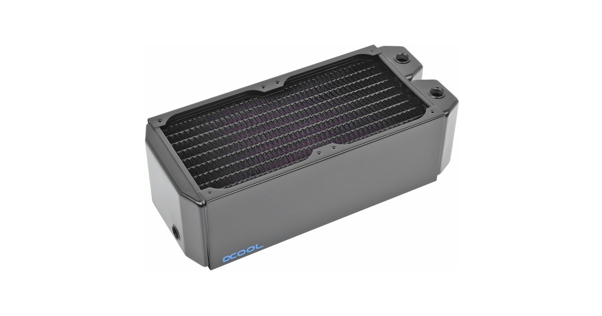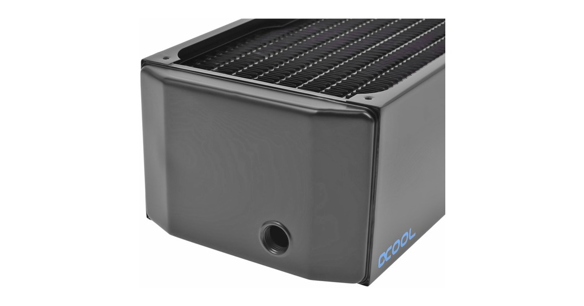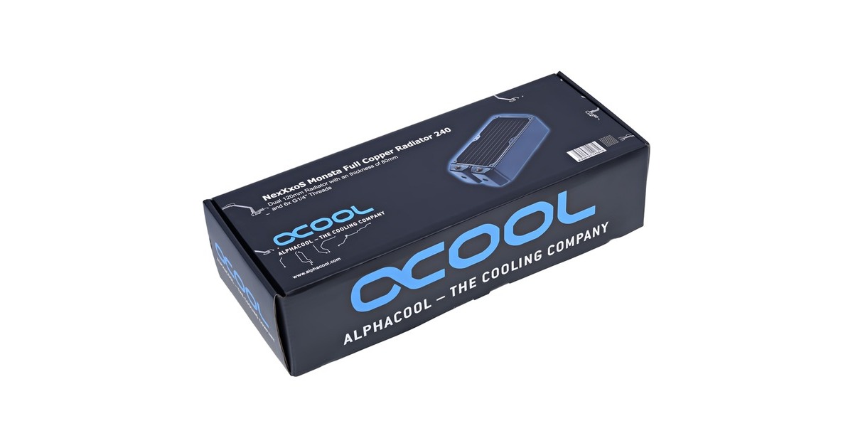 Der Hersteller Alphacool setzt bei allen wasserführenden Teilen auf reines Kupfer. Die Vorkammern, Wasserkanäle und die Finnen sind alle aus reinem Kupfer. Dadurch bieten Alphacool Radiatoren höchste Wärmeleitfähigkeit, wodurch das Leistungslimit deutlich höher liegt als bei Aluminium Radiatoren. Kurz gesagt, die Kühlleistung ist schlichtweg höher, wenn man sehr viel Wärme abführen möchte. Kupfer ist im Wasserkühlungsbereich seit Jahren die beste Wahl. Alle Alphacool Radiatoren sind für den Silent Betrieb ausgelegt. Man benötigt also keine Lüfter mit besonders hohem statischen Druck, um die gewünschte Performance zu erzielen, sondern kann auf normale Lüfter mit niedriger Drehzahl setzen. Der Performanceverlust gegenüber speziellen Lüftern für Radiatoren ist dadurch geringfügig und kann normalerweise ignoriert werden. Wer natürlich die maximale Kühlleistung erreichen will und auf angepasste Lüfter für Radiatoren setzt, wird natürlich auch nicht enttäuscht. Die maximale Performance leidet nicht darunter. Dank des Kupfers und dem qualitativ hochwertigen Herstellungsverfahren erhält man auch mit Hochleistungslüftern immer noch eine enorme Leistungssteigerung für die wassergekühlten Komponenten. Die Lüfter werden mit den beiliegenden 30 oder 35 mm M3 Schrauben montiert. Dabei bieten alle Alphacool Radiatoren einen Schutz, der verhindert, dass die Schrauben in die Kühlfinnen geschraubt werden können. Eine Metallplatte unterhalb der Bohrungen verhindert das weitere Eindringen der Schrauben. Um den Radiator direkt am Gehäuse zu montieren, liegen passende Schrauben im Lieferumfang bei. Alphacool deckt mit der NexXxoS Radiator-Reihe nahezu alle Größen ab und bietet in diesem Bereich ein umfangreiches Portfolio. Angefangen von 40 mm Dual Radiatoren bis hin zum Triple Radiator für 180 mm Lüfter. Dazu unterschiedliche Dicken: ST30, XT45, UT60 und Monsta, wobei die Zahl immer für die Dicke des Radiators in Millimetern steht und die Monsta Radiatoren ca. 86 mm dick sind.Art.-Nr.: 1646109