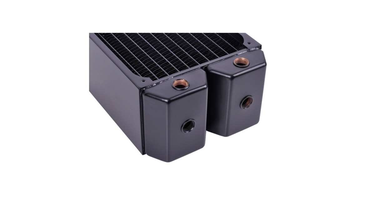 Der Hersteller Alphacool setzt bei allen wasserführenden Teilen auf reines Kupfer. Die Vorkammern, Wasserkanäle und die Finnen sind alle aus reinem Kupfer. Dadurch bieten Alphacool Radiatoren höchste Wärmeleitfähigkeit, wodurch das Leistungslimit deutlich höher liegt als bei Aluminium Radiatoren. Kurz gesagt, die Kühlleistung ist schlichtweg höher, wenn man sehr viel Wärme abführen möchte. Kupfer ist im Wasserkühlungsbereich seit Jahren die beste Wahl. Alle Alphacool Radiatoren sind für den Silent Betrieb ausgelegt. Man benötigt also keine Lüfter mit besonders hohem statischen Druck, um die gewünschte Performance zu erzielen, sondern kann auf normale Lüfter mit niedriger Drehzahl setzen. Der Performanceverlust gegenüber speziellen Lüftern für Radiatoren ist dadurch geringfügig und kann normalerweise ignoriert werden. Wer natürlich die maximale Kühlleistung erreichen will und auf angepasste Lüfter für Radiatoren setzt, wird natürlich auch nicht enttäuscht. Die maximale Performance leidet nicht darunter. Dank des Kupfers und dem qualitativ hochwertigen Herstellungsverfahren erhält man auch mit Hochleistungslüftern immer noch eine enorme Leistungssteigerung für die wassergekühlten Komponenten. Die Lüfter werden mit den beiliegenden 30 oder 35 mm M3 Schrauben montiert. Dabei bieten alle Alphacool Radiatoren einen Schutz, der verhindert, dass die Schrauben in die Kühlfinnen geschraubt werden können. Eine Metallplatte unterhalb der Bohrungen verhindert das weitere Eindringen der Schrauben. Um den Radiator direkt am Gehäuse zu montieren, liegen passende Schrauben im Lieferumfang bei. Alphacool deckt mit der NexXxoS Radiator-Reihe nahezu alle Größen ab und bietet in diesem Bereich ein umfangreiches Portfolio. Angefangen von 40 mm Dual Radiatoren bis hin zum Triple Radiator für 180 mm Lüfter. Dazu unterschiedliche Dicken: ST30, XT45, UT60 und Monsta, wobei die Zahl immer für die Dicke des Radiators in Millimetern steht und die Monsta Radiatoren ca. 86 mm dick sind.Art.-Nr.: 1646120