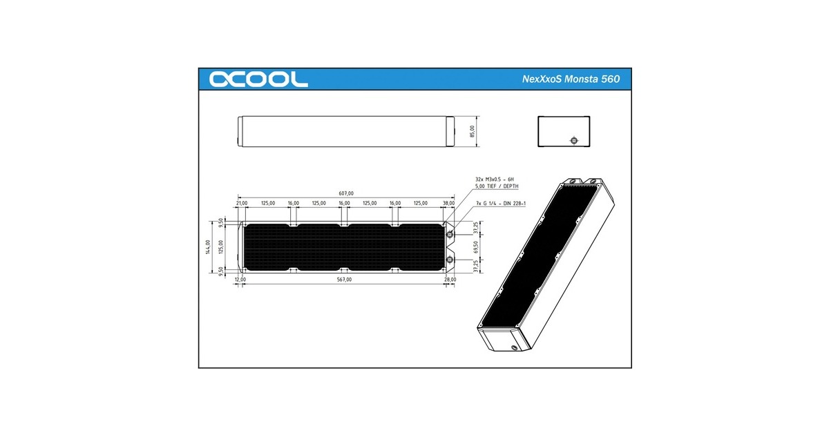 Anschlüsse: 6x G1/4",Lüftergewinde: M3, Druckgetestet: 2 Bar |