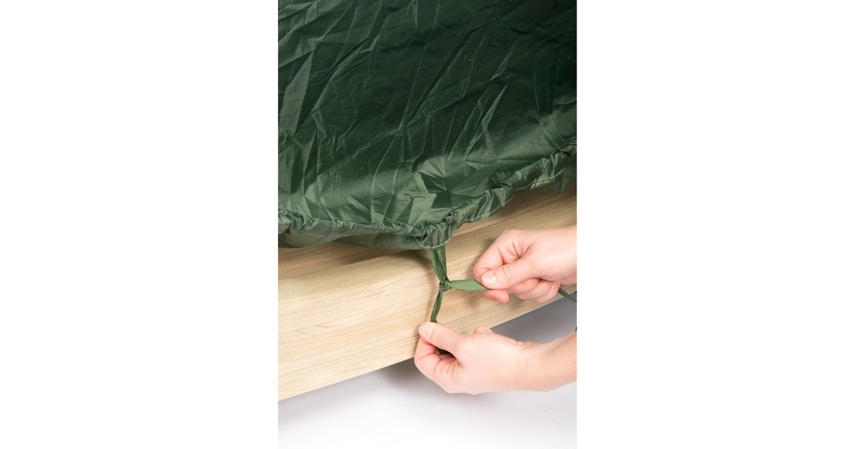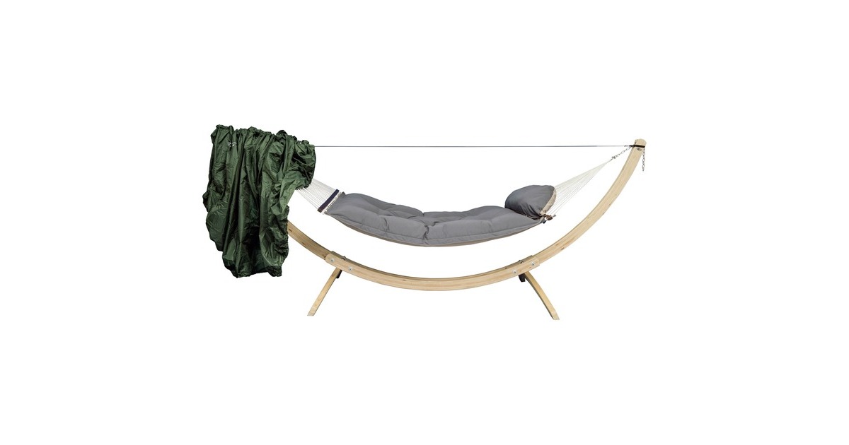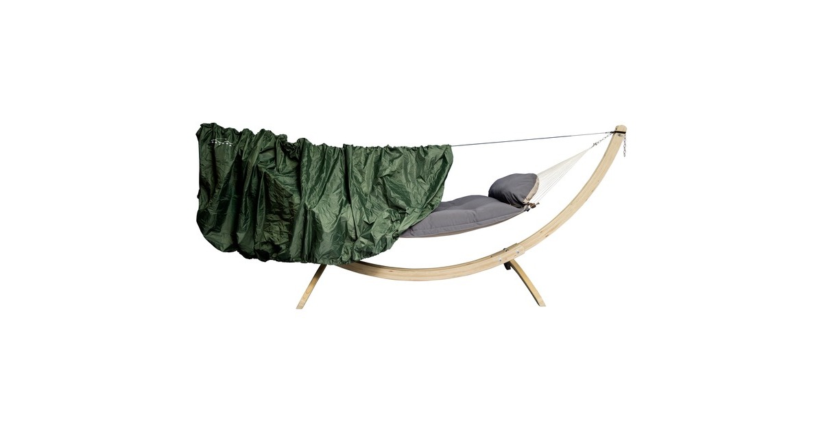 Das Hängematten Cover ist schnell und einfach mit Hilfe der Abspannleine befestigt und mit wenigen Handgriffen auch wieder verstaut. Das Cover ist mit Hängemattengestellen mit einer Gesamtlänge von ca. 320 – 395 cm und einer Höhe ca. ≥ 130 cm kombinierbar.Art.-Nr.: 1593320