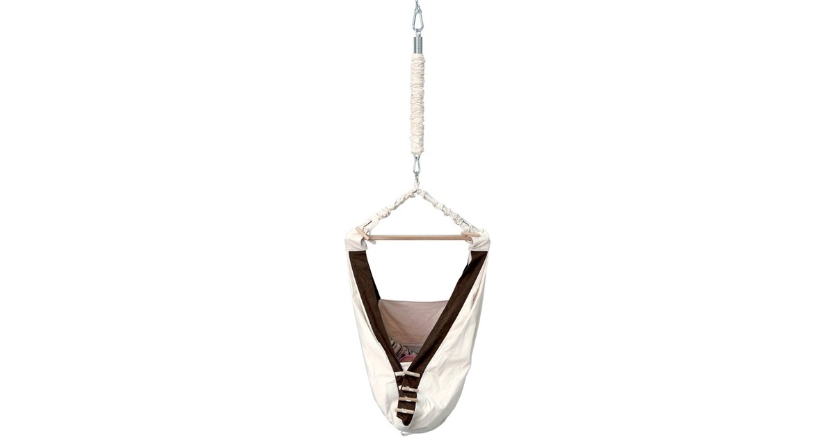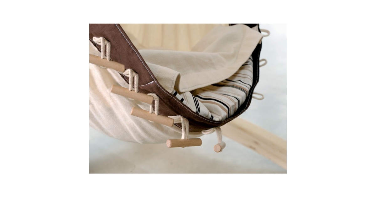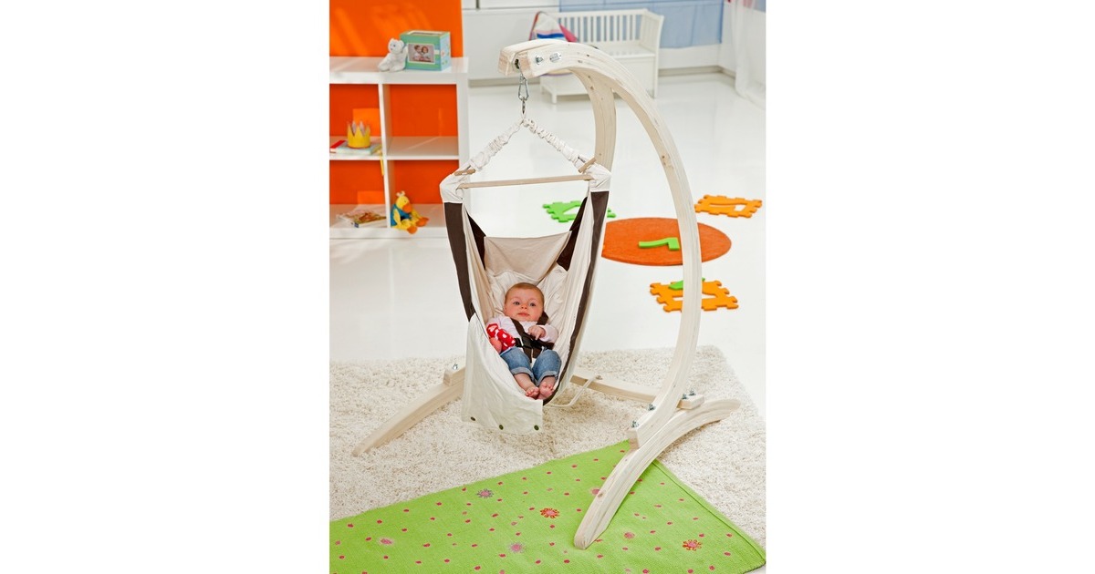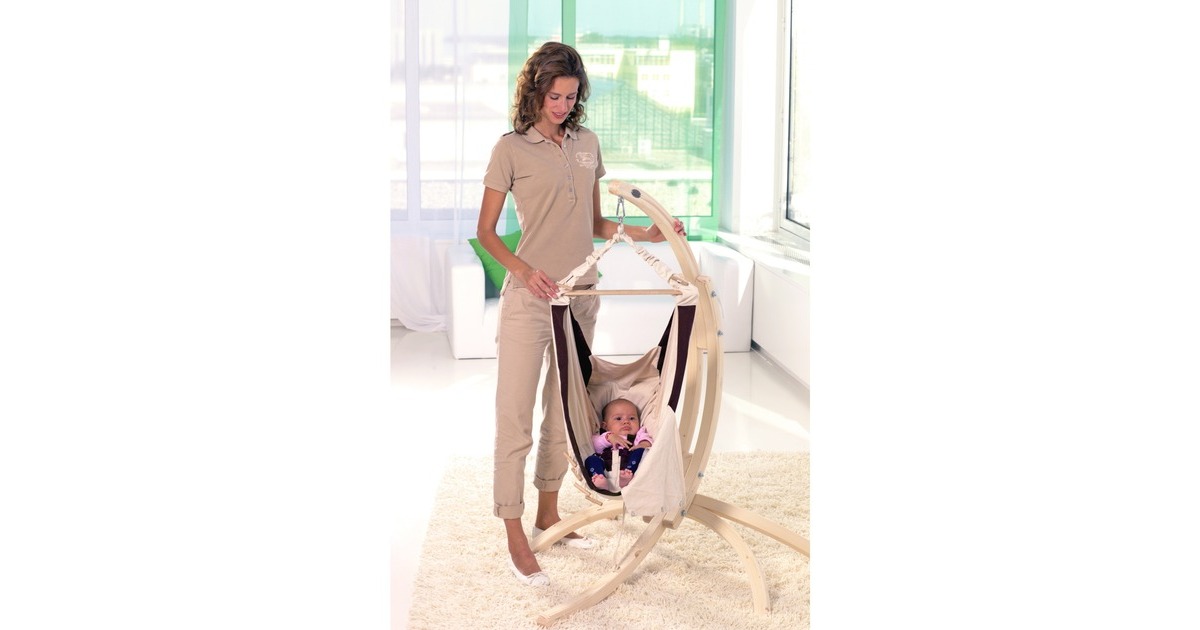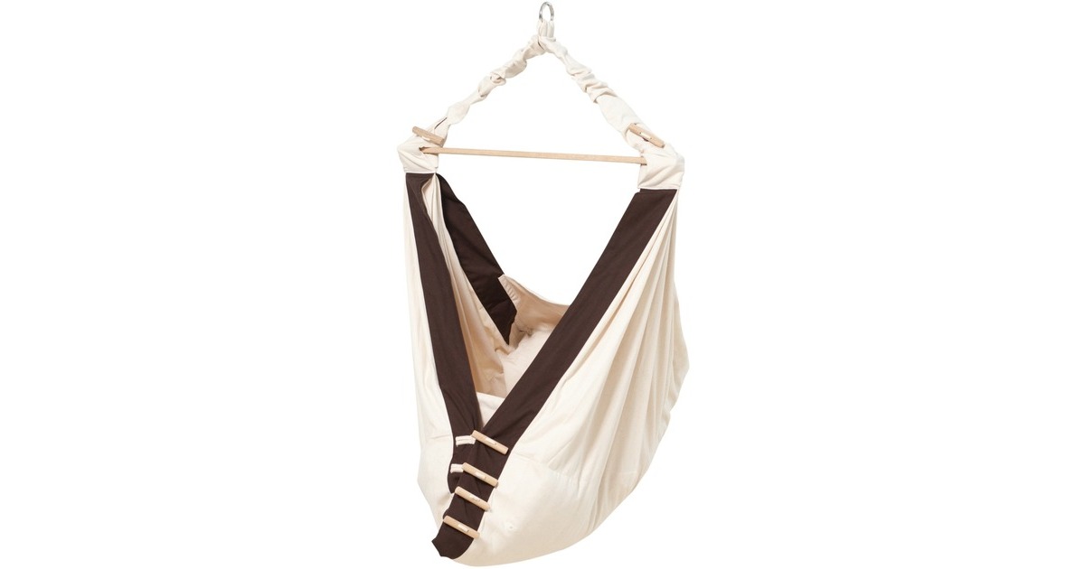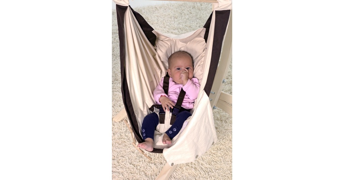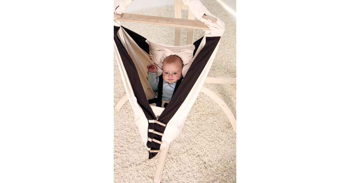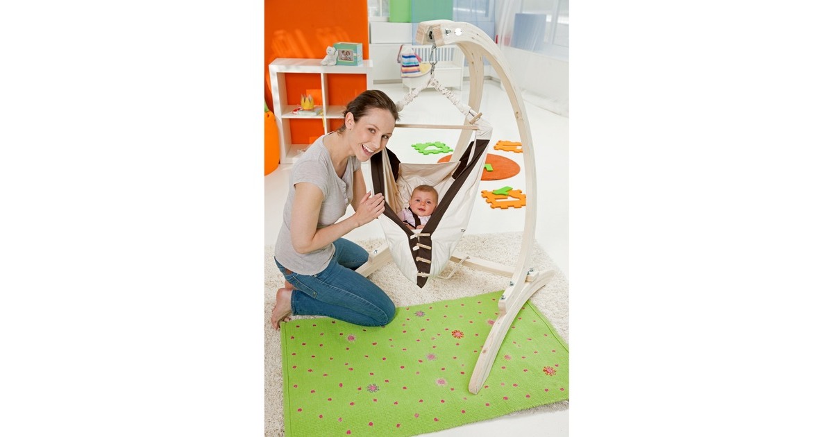 In der Babyhängematte Kangoo entspannt und schlummert das Baby geschützt vor der Außenwelt. Sie umschließt das Baby kuschelig weich und sanft aber doch spürbar, während es leicht hin und her geschaukelt wird. Zugeknöpft ist sie dem Mutterleib so ähnlich wie möglich und der perfekte Schlafplatz. Im Inneren der Kangoo befindet sich ein Matratzeneinschubfach für die kuschelweiche Matratze (nicht enthalten). Der gerundete Rücken mit dem Babys zur Welt kommen wird durch die Form der Kangoo optimal unterstützt. Innerhalb des ersten Lebensjahres streckt sich die Wirbelsäule langsam. Ein behutsamer Prozess der erst beendet ist, wenn das Kind freistehen kann und zu laufen beginnt. Im Gegensatz zu einer harten Matratze erlaubt die Hängematte der Babywirbelsäule sich tagsüber zu erholen und verhindert sogar einen platten Hinterkopf. Die Kangoo ist eine sichere Babyhängematte die mitwächst, denn sie bietet 3 verschiedene Einstellungsmöglichkeiten. Neugeborene, sehr kleine Babys oder Frühchen fühlen sich besonders wohl, wenn man die Kangoo am Fußende mit den Holzverschlüssen eng einstellt. Ein paar Monate später sorgt das Öffnen der Holzknöpfe für etwas mehr Platz. Ältere und größere Babys haben es dann mit komplett offenem Fußende schön luftig und eine bessere Sicht auf die Außenwelt. Vor dem Herausfallen schützt ein eingenähtes Sicherheitshöschen mit integrierten Haltegurten. Für Frischluftzufuhr ist bei der nach oben offenen Babywiege immer gesorgt.Art.-Nr.: 1792292