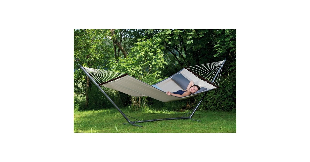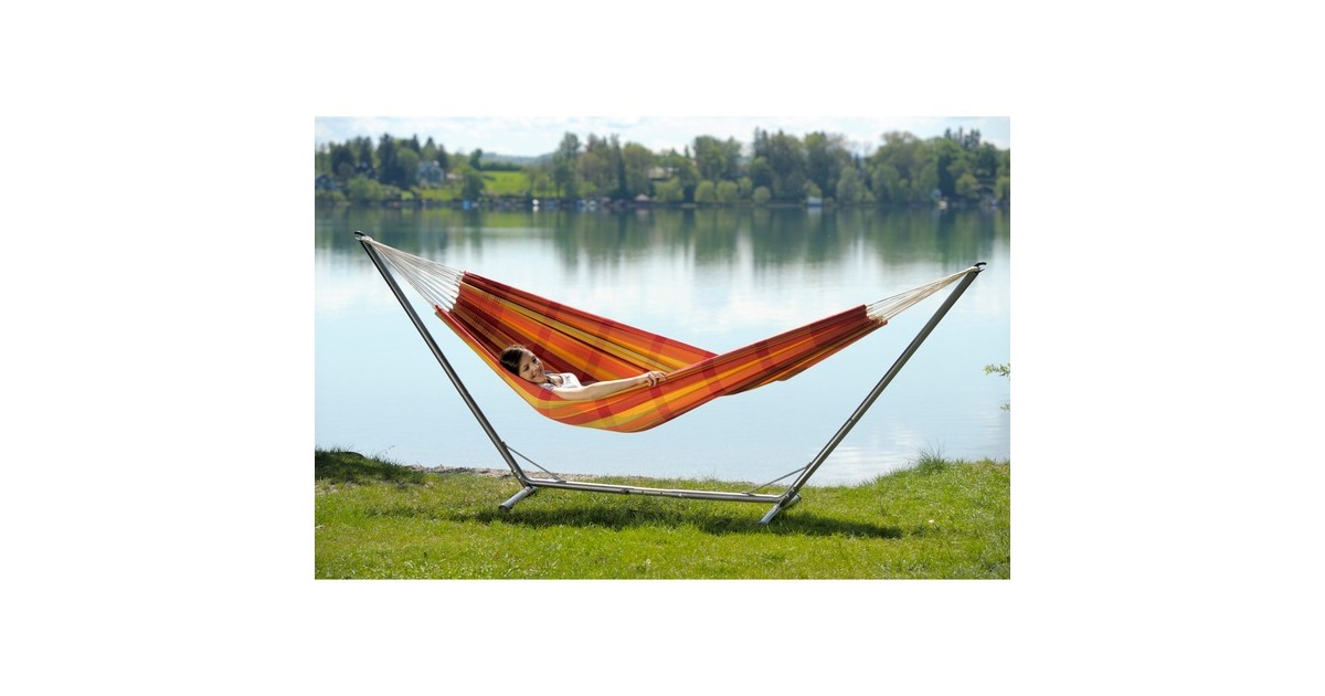 Das Sumo Grande Hängemattengestell eignet sich für extra große Hängematten und kann ohne Werkzeug aufgebaut werden. Das hochwertige Metall-Gestell ist mit einer RockStone Beschichtung versehen, welche kratzfester als herkömmliche Pulverbeschichtungen ist. Die Breite des Gestells kann von 330 cm bis 360 cm eingestellt werden und trägt dabei ein Maximalgewicht von bis zu 200 kg.Art.-Nr.: 1399044