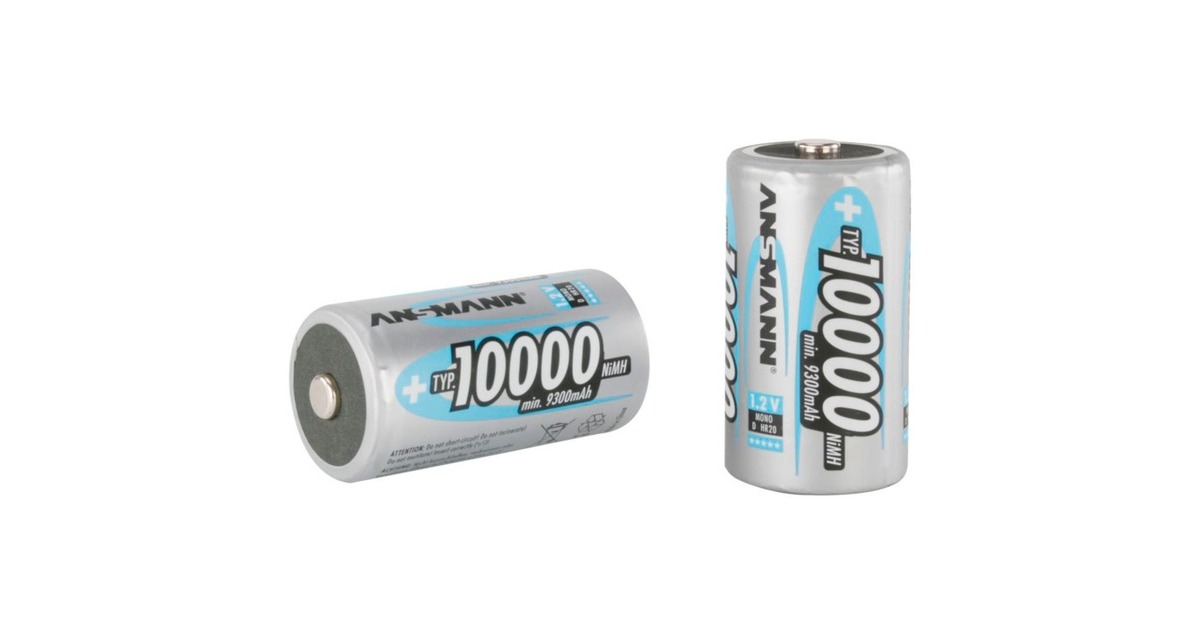 Dieser Zweierpack aus Ansmann 10000mAh NiMh Mono-Akkus ist für Taschenlampen, tragbare Radios, Hobby, Haushalt, Taschenlampen und Spielwaren geeignet. Die Akkus sind schnelllade- und hochstromfähig, und sie haben eine Kapazität von je 10000mAh.Art.-Nr.: 53822