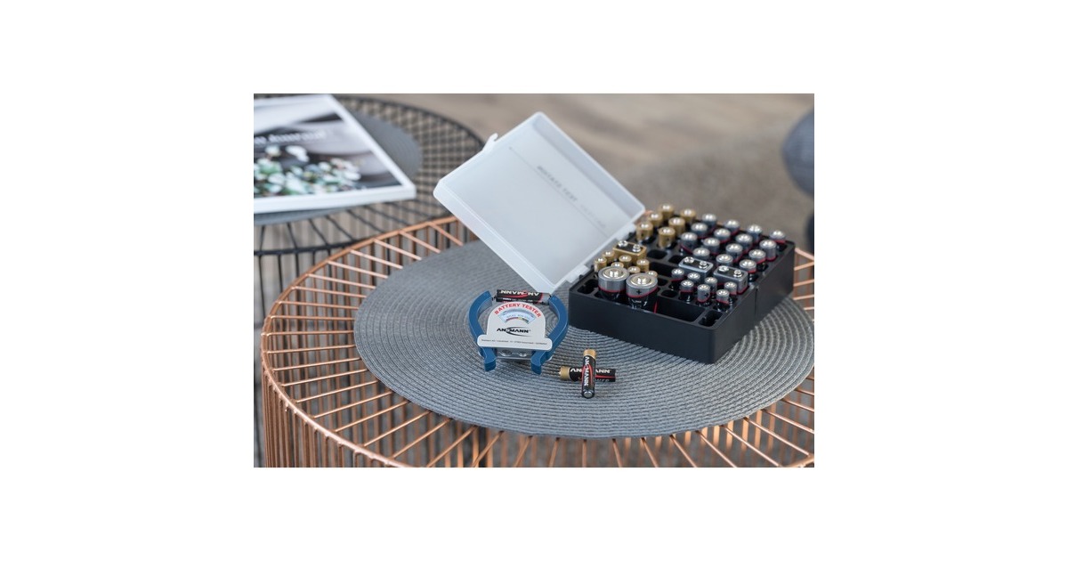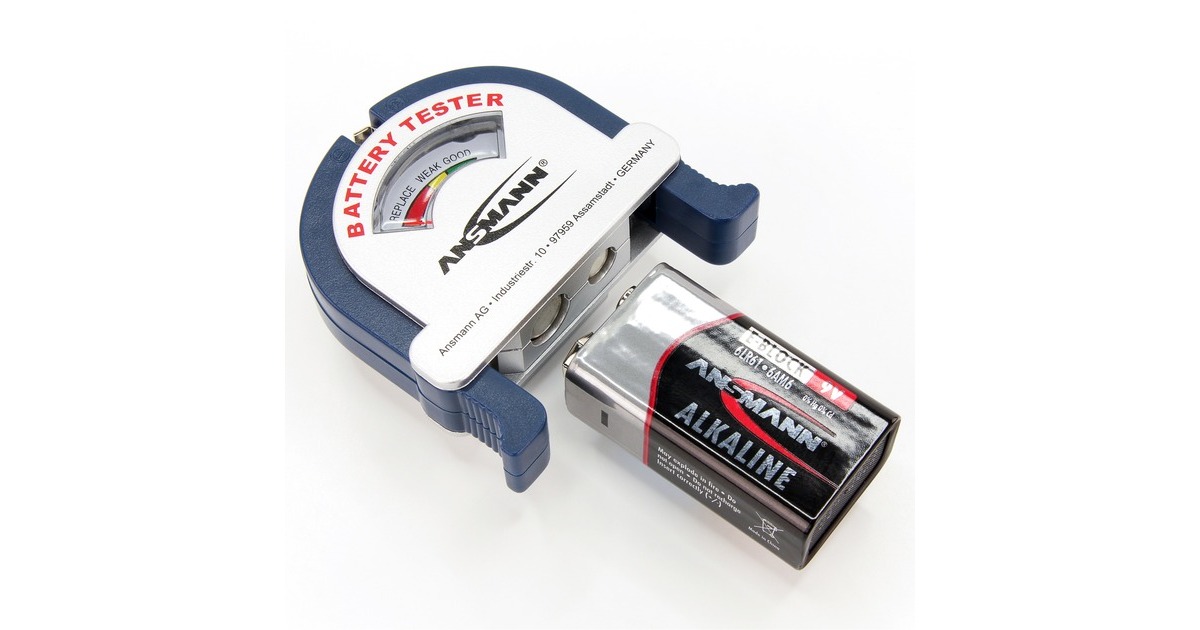 Der handliche Batterietester Ansmann 4000001 im Taschenformat funktioniert ohne Batterie oder sonstige Stromzufuhr. Damit ist er jederzeit einsatzbereit, es muss keine Rücksicht auf Stromanschluss oder volle Batterien genommen werden. Er testet Alkaline Batterien, NiMH- und NiCd-Akkus in den Größe Micro AAA, Mignon AA, Baby C, Mono D, 9V-Block E und Knofpzellen zuverlässig und schnell. Auf einer Skala wird der Zustand angezeigt.Art.-Nr.: 740546
