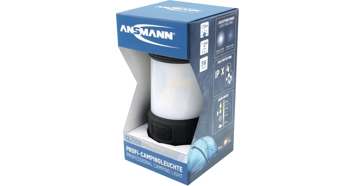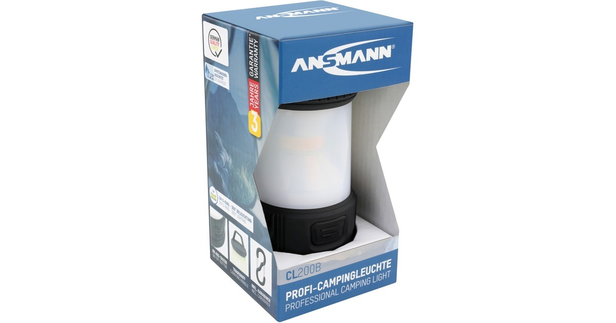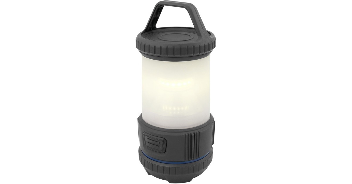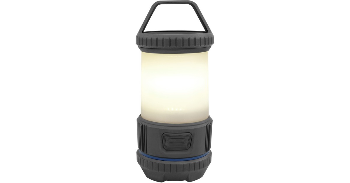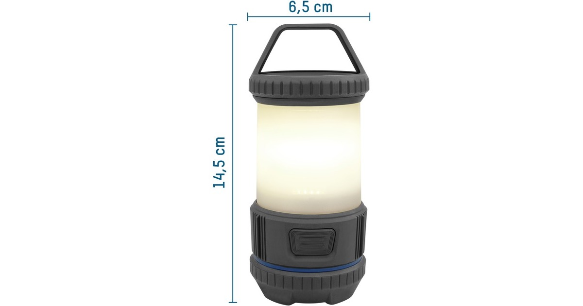 Die CL200B ist eine aus robustem Kunststoff bestehende, nach IPX4 gegen Spritzwasser geschützte Campingleuchte. Diese Laterne wird über 4 Mignon AA-Batterien (nicht im Lieferumfang) mit Spannung versorgt. Sie erzeugt einen Lichtstrom von bis zu 175 Lumen mit zwei Leuchtstufen und und erreicht so eine Leuchtdauer von bis zu 94 Stunden. Art.-Nr.: 1847085