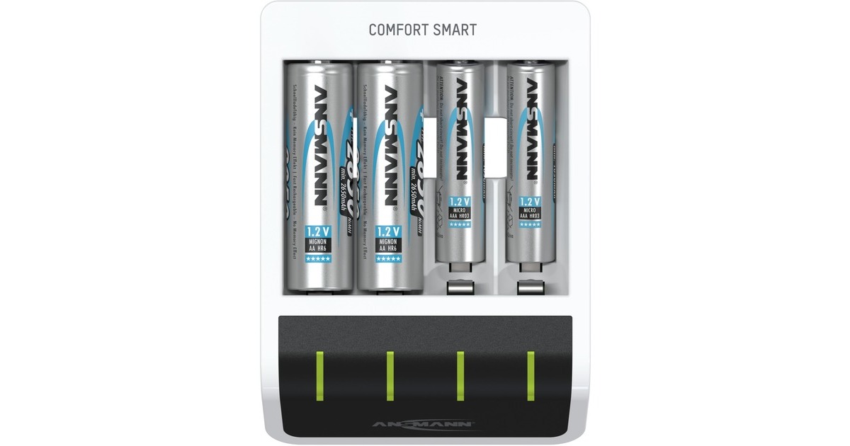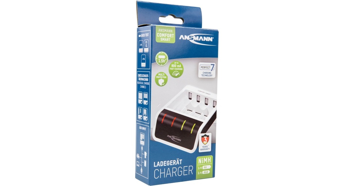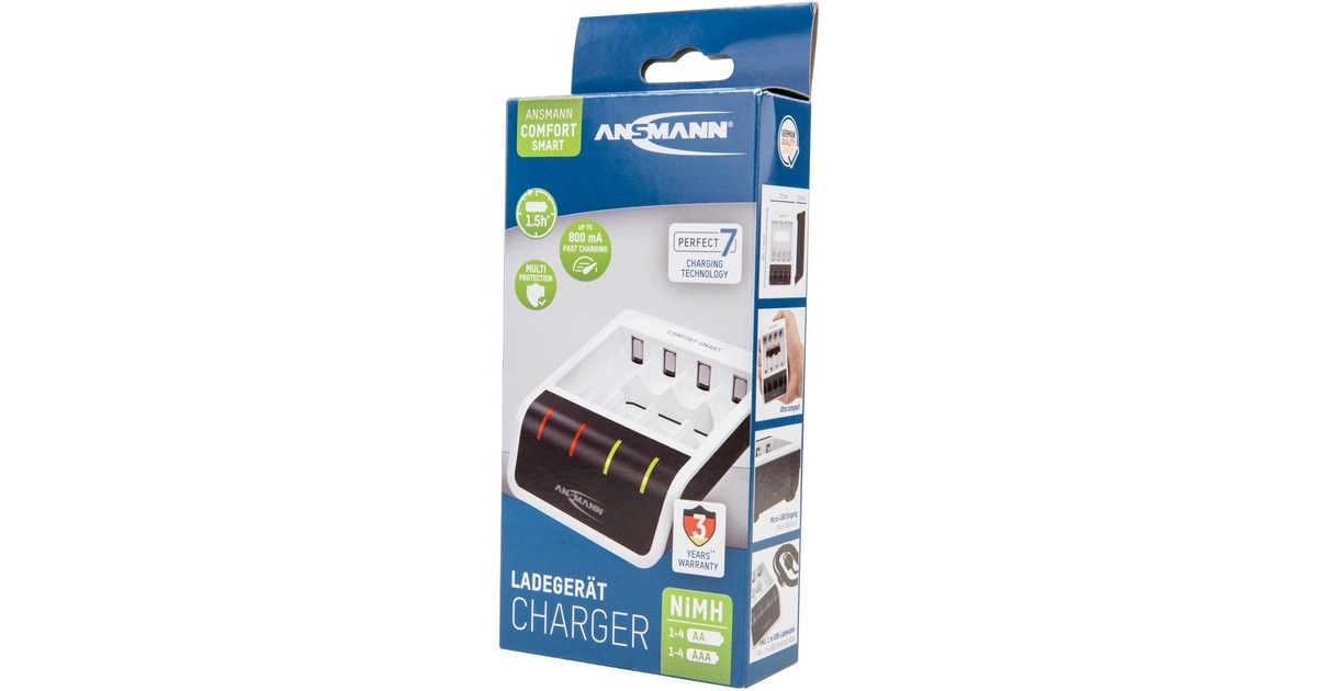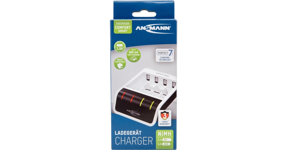 Dank der intelligenten "PERFECT 7"-Ladetechnologie sorgt das Comfort Smart Ladegerät von Ansmann präzise und schnell für volle Akkus. Die vollautomatische 7-Stufen-Ladung maximiert die Lebensdauer und die Leistung der Akkus erheblich. Das innovative Ladeverfahren basiert auf neuesten Erkenntnissen aus der Akku-Forschung und berücksichtigt eine Vielzahl von individuellen Parametern. Die übersichtliche Statusanzeige ermöglicht eine intuitive Bedienung. Dank der einfachen 3-farbige LED-Anzeige ist das Ablesen des jeweiligen Zellen-Status kinderleicht. Durch das kompakte Design des Comfort Smart ist es möglich, dieses bequem auf Reisen mitzunehmen oder bei Outdoor-Aktivitäten stets griffbereit zu haben. Das intelligente Schnellladegerät kann bis zu vier Akkus der Größen Mignon und/oder Micro laden. Die Akkus können dabei gemischt in einen beliebigen Ladeschacht eingelegt werden. Es ist keine Rücksicht auf Baugröße oder Kapazität notwendig. Jede Zelle wird während des Ladevorgangs einzeln überwacht und individuell bis zur maximalen Kapazität geladen.Art.-Nr.: 1846945