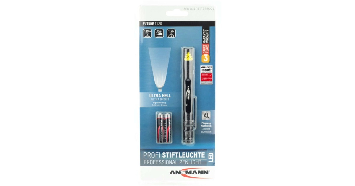 Die Future T120 überzeugt durch kompakte Proportionen im Stiftformat und ihr griffiges, stabiles Aluminiumgehäuse. Ihre LED erreicht eine Leuchtweite von bis zu 75 Metern und erzeugt einen Lichtstrom von bis zu 130 Lumen bei einer Leuchtdauer von bis zu 4 Stunden. Dabei wird sie komfortabel über einen Endkappenschalter ein- und ausgeschaltet - ideal auch zur Bedienung mit Handschuhen. Mit im Lieferumfang ist neben den Batterien ein abnehmbarer Befestigungsclip.Art.-Nr.: 1524773