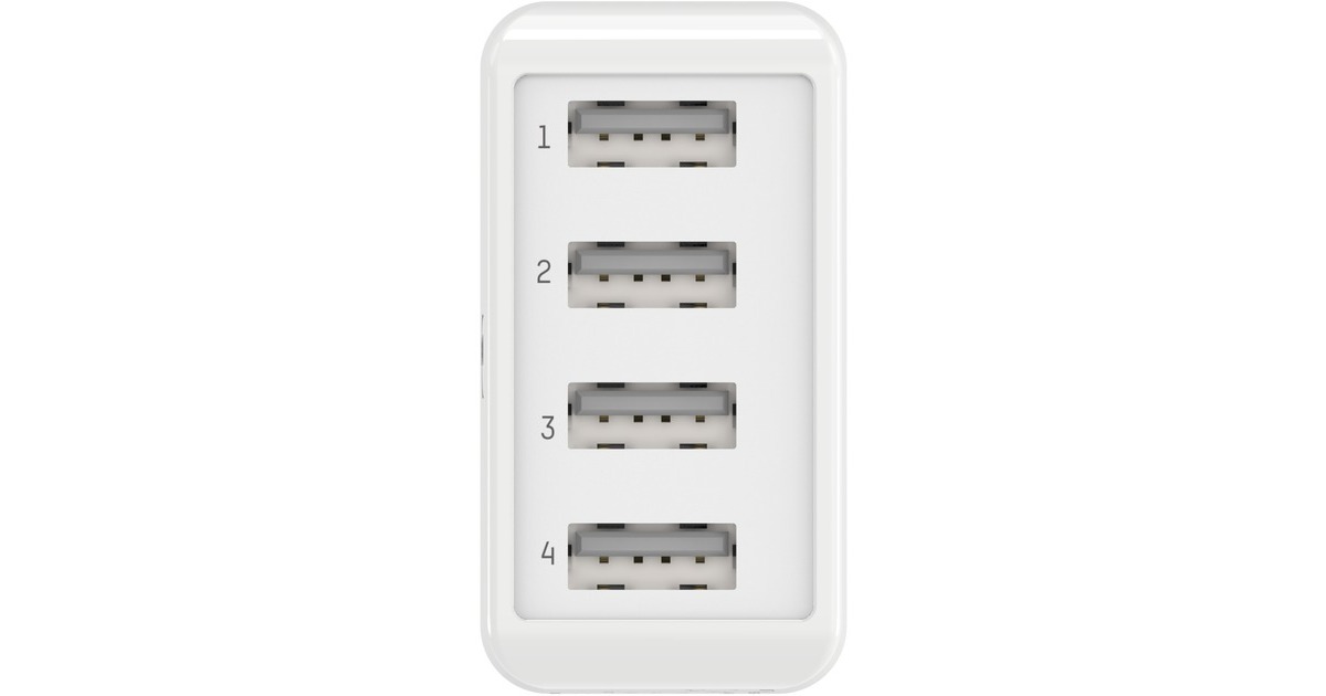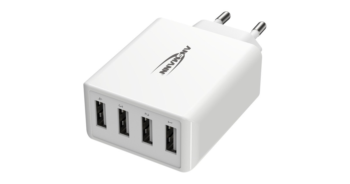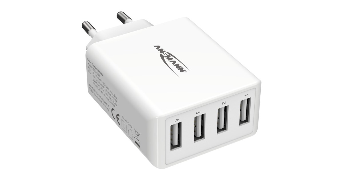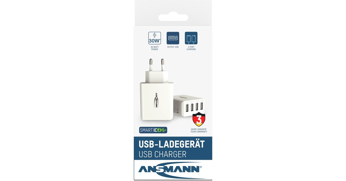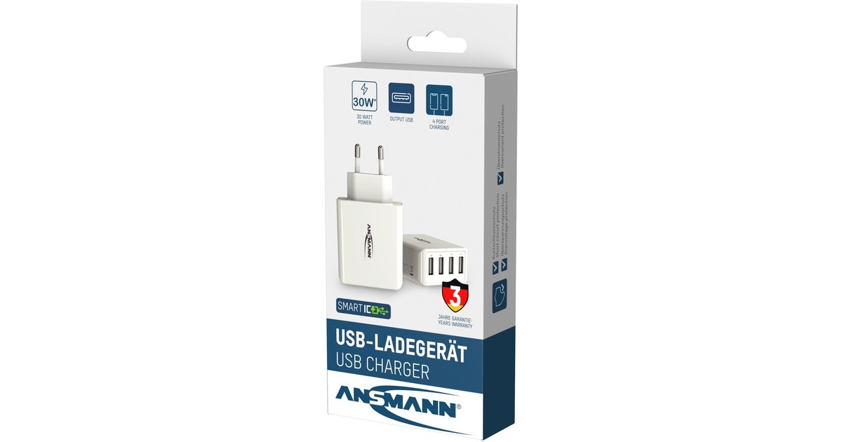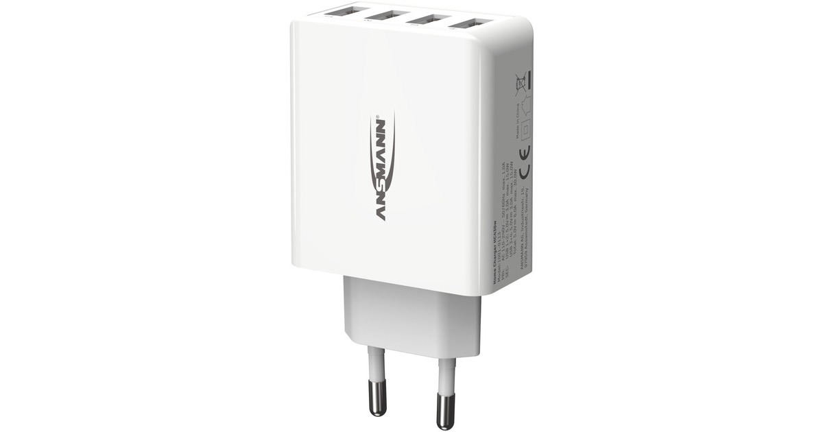 Der Home Charger HC430 von Ansmann bietet intelligente Ladesteuerung und Multisafe-Technologie für bis zu vier Geräte. Dieses Ladegerät mit vier USB-Anschlüssen lädt mit bis zu 30 Watt Smartphones, Tablets oder andere USB-Geräte.Art.-Nr.: 1847004