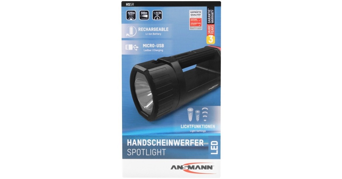 Der HS5R ist ein leistungsstarker Handscheinwerfer für den professionellen Einsatz. Er ist mit einer extrem hellen 5-Watt-LED ausgestattet, die eine Leuchtkraft von bis zu 420 Lumen erreicht. Mit einer Leuchtweite von 500 Metern bei einer Leuchtdauer von bis zu 9,5 Stunden überzeugt der HS5R im alltäglichen Gebrauch. Er wird durch einen Lithium-Ionen-Akku mit Strom versorgt, verfügt über einen praktischen Haltemagneten und seine Ladeschale kann zum einfachen Laden an der Wand montiert werden.Art.-Nr.: 1518559