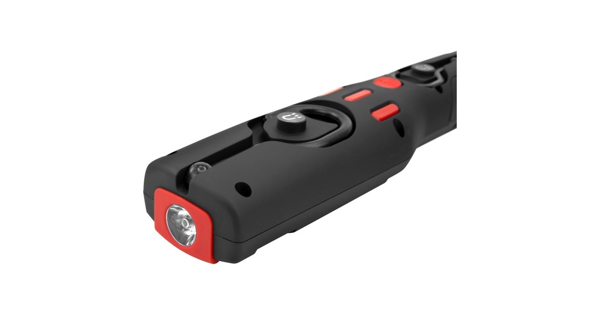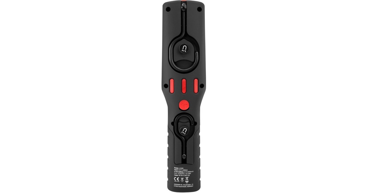 Die IL300R ist ein zuverlässiger Partner für Haushalt und Werkstatt. Sie verfügt über mehrere Haltemagnete und einen schwenkbaren Griff, so dass sie flexibel an die jeweilige Arbeitsposition angepasst werden kann. Es sind zwei LEDs verbaut: Die Haupt-LED erzeugt einen Lichtstrom von 325 Lumen, die Zusatz-LED im Lampenkopf für punktuelle Beleuchtung leuchtet mit 110 Lumen. Diese Arbeitsleuchte wird per integriertem Akku mit Energie versorgt, der über USB aufgeladen werden kann.Art.-Nr.: 1857428