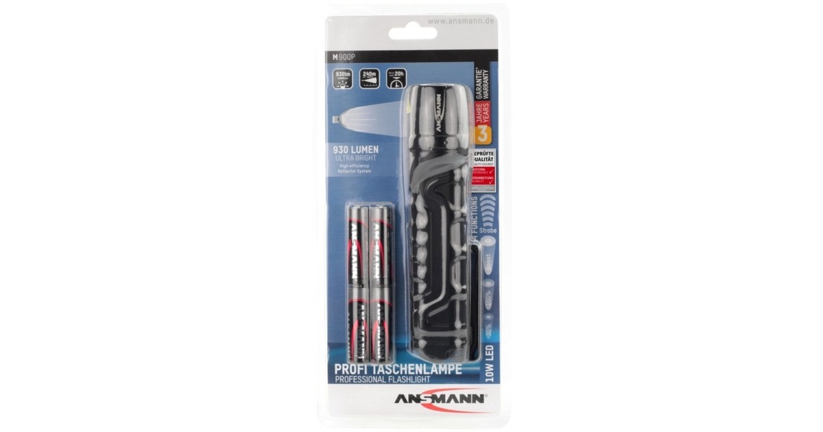 Handlicht, stabil, leistungsstark: Die M900P überzeugt durch ideale Gehäuseproportionen. Das stabile, bei kalter Witterung nicht so stark abkühlende Gehäuse aus ABS-Kunststoff, ist bis zu einer Fallhöhe von einem Meter stoßfest und bis zu einer Tiefe von einem Meter wasserdicht. Hinzu kommt überzeugende Lichtleistung: Die von vier AA-Batterien angetriebene LED erreicht eine Leuchtweite von bis zu 240 Metern und eine Helligkeit von bis zu 930 Lumen. Dabei leuchtet die M900P bis zu 20 Stunden in vier Betriebsarten: 100% Leuchtkraft, Eco, Blinklicht und Boost.Art.-Nr.: 1518448