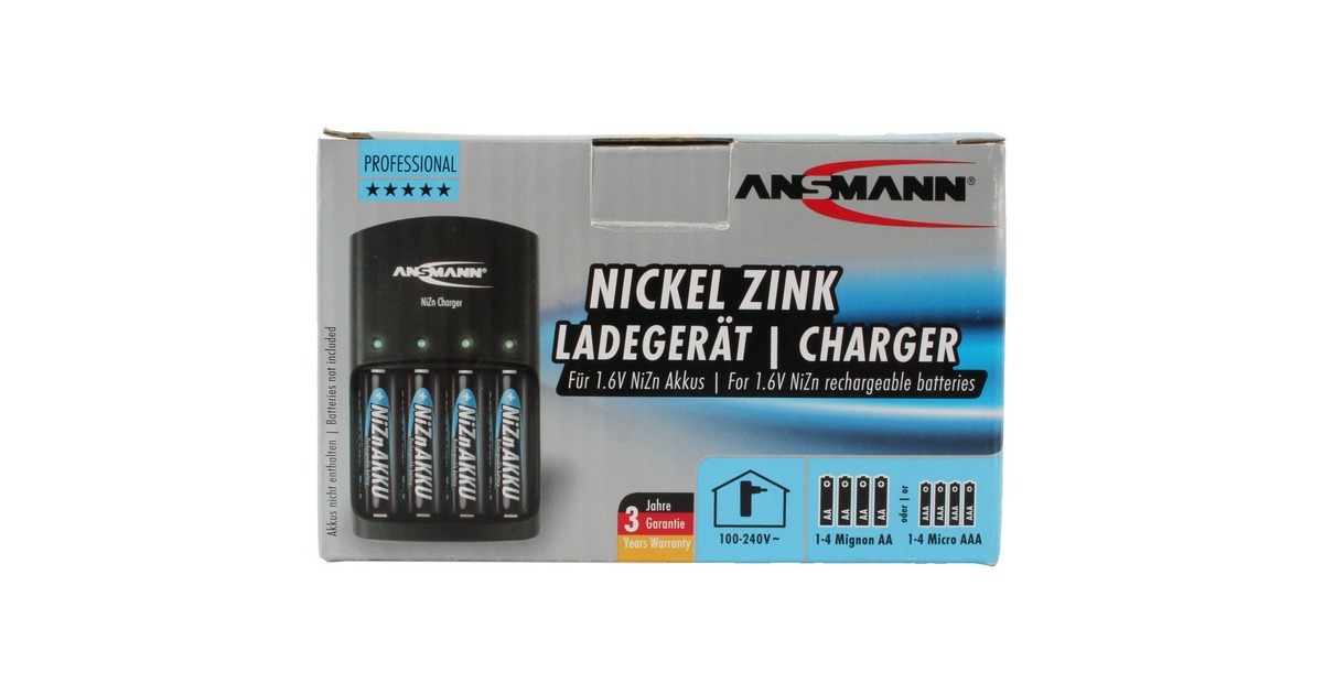 Mit dem NiZn-Ladegerät liefert Ansmann ein Ladegerät, das speziell für die Anforderungen von Nickel-Zink-Akkus mit 1,6V konzipiert wurde. Es können bis zu vier NiZn-Akkus der Größen Micro AA und/oder Mignon AAA geladen werden - auch gemischt. Der Akku-Ladestand vor Ladebeginn ist dabei ohne Bedeutung. Defekte oder verkehrt herum eingelegte NiZn-Akkus sowie NiMH-/NiCd-Akkus werden automatisch erkannt und nicht geladen. Jeder Akkuschacht wird separat überwacht, so dass die Akkus individuell und unabhängig voneinander mit einem Ladestrom von 500mA bis zur maximalen Kapazität geladen werden können. Dank mikroprozessorgesteuerter Ladetechnik mit mehrfachem Überladeschutz durch Spannungsüberwachung und Sicherheitstimer wird der Ladevorgang automatisch beendet, sobald die Akkus vollständig geladen sind. LEDs zeigen für jeden Schacht separat den Ladestatus an. Das Ladegerät verfügt über ein Netzteil mit Weitbereichseingang (100-240V) und ist dadurch weltweit einsetzbar.Art.-Nr.: 1846979