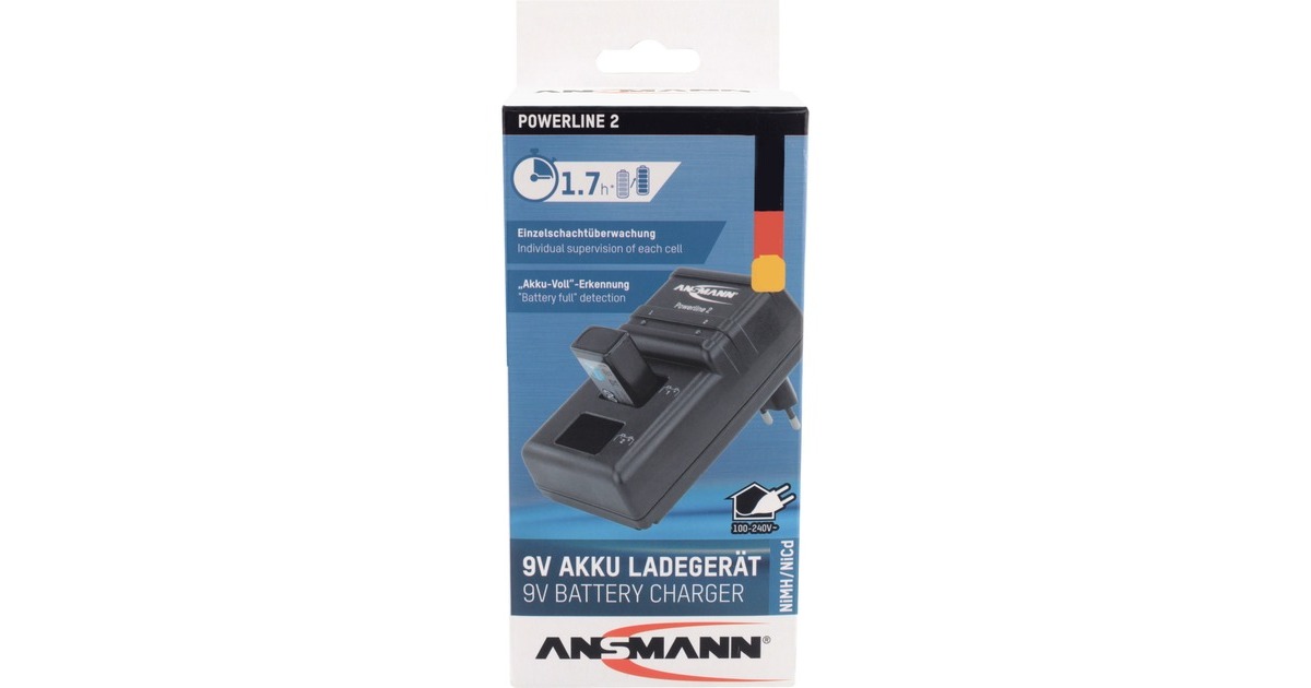 Das Steckerladegerät Ansmann Powerline 2 dient zum Laden von 1-2 9V E-Block NiMH Akkus mit 8.4V Nennspannung. Der Ladevorgang beginnt direkt, nachdem man die Zelle polrichtig eingesteckt hat. Durch die Einzelschachtüberwachung kann man problemlos einen oder zwei Akkus unabhängig voneinander aufladen. Schadhafte Zellen erkennt das Gerät selbstständig und gibt einen Hinweis, diese auszusortieren. Diese kinderleichte Bedienung spart viel Zeit. Das Powerline 2 von ANSMANN hat eine hochwertige, microcontroller gesteuerte Ladetechnik verbaut, die den Akku auf mehrfache Art und Weise vor raschem Verschleiß schützt. Dazu zählt u.a. die automatische Abschaltung des Ladevorgangs, sobald die Zellen voll aufgeladen sind, sowie die schonende Erhaltungsladung für alle Zellen nach dem eigentlichen Ladevorgang. Speziell hochkapazitive Zellen sind aufgrund ihrer hohen Energiedichte besonders vorsichtig zu behandeln. Die spezielle Elektronik im Powerline 2 von ANSMANN bietet Sicherheit auf höchstem Niveau. Dazu hat Ansmanns seine eigens entwickelte Abschaltautomatik noch einmal verbessert.Art.-Nr.: 1019143