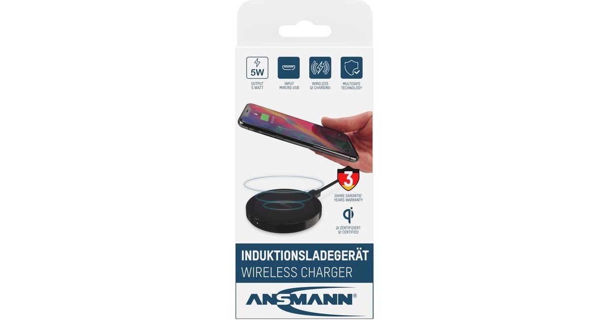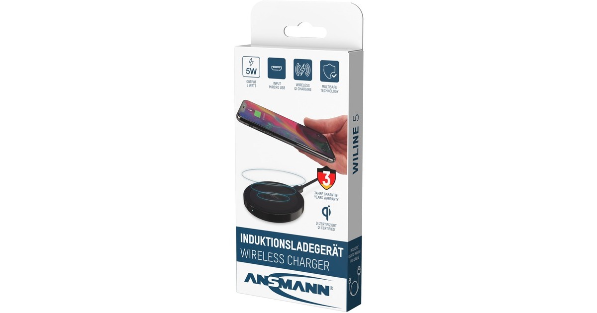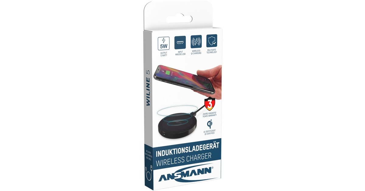 Die induktive Ladestation WiLine 5 von Ansmann mit integrierter LED-Anzeige kommt in einem kompakten leichten Gehäuse und ist kompatibel mit allen Qi-fähigen Smartphones und Qi-Empfängern. Die Auslieferung erfolgt inklusive Micro-USB auf USB-Kabel.Art.-Nr.: 1846970