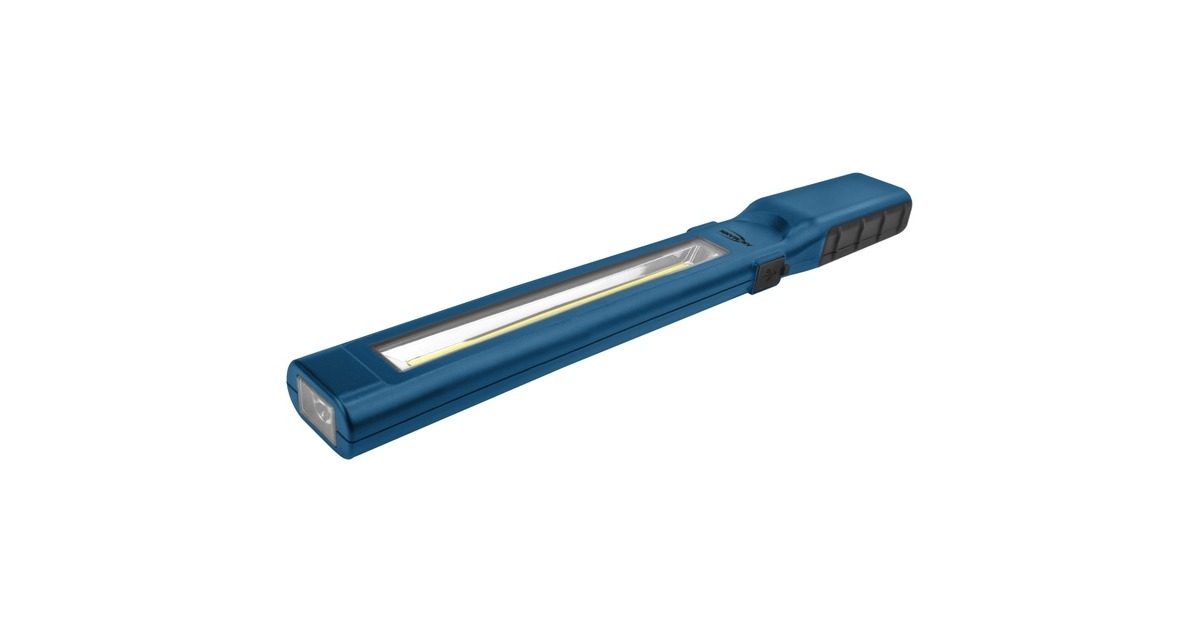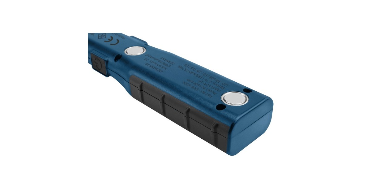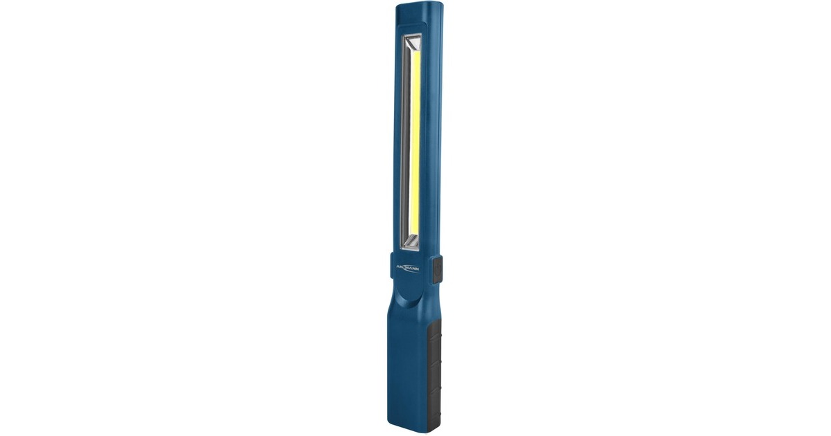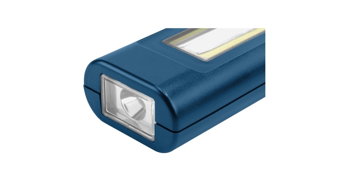 Mit der WL450R slim steht eine professionelle Arbeitsleuchte mit zwei LEDs bereit. Die Hauptleuchte erzeugt mit COB-Technik einen Lichtstrom von 450 Lumen, wobei das Licht durch den großen Abstrahlwinkel gleichmäßig verteilt wird. Für punktuelle Präzisionsbeleuchtung ist eine weitere LED im Lampenkopf verbaut. Das Gehäuse der Leuchte ist nach IPX4 gegen äußere Belastungen geschützt, gummierte Flächen sorgen für hohe Grifffestigkeit. Zwei integrierte Magnete fixieren die Leuchte an metallischen Oberflächen. Die Energieversorgung erfolgt über einen integrierten Akku, der per USB-Kabel aufgeladen werden kann.Art.-Nr.: 1857759
