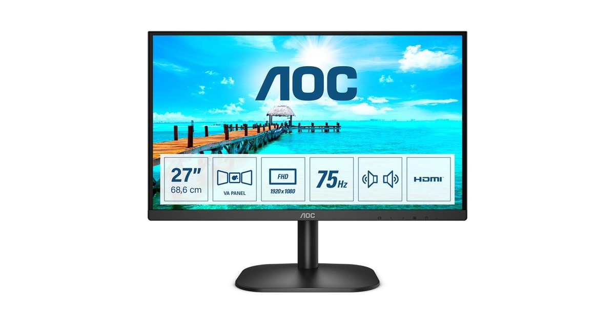 AOCs Monitor 27B2AM ist mit einem 69 cm (27") großen FullHD (1.920 x 1.080 Pixel) VA-Panel mit lebensechten Farben ausgestattet. Zudem sorgen VGA- und HDMI-Anschlüsse für Flexibilität bei Ihren Quellgeräten. Der 27B2AM ist eine gute Wahl für Nutzer von Multi-Monitor-Konfigurationen, denn er bietet eine Vorrichtung für eine VESA-Halterung, ist an 3 Seiten rahmenlos und überzeugt durch breite Betrachtungswinkel. Und nicht zuletzt schonen die Technologien LowBlue und Flicker-Free die Augen.Art.-Nr.: 1761654