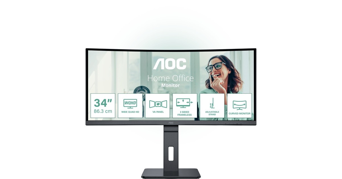 Der AOC CU34P3CV ist ein 86 cm (34") WQHD (3.440 x 1.440) Monitor mit gekrümmtem VA-Bildschirm und einem attraktiven, dreiseitigen, ultradünnen Rahmen, der eine wahrhaft immersive Darstellung bietet. Das breite Seitenverhältnis von 21:9 dieses Modells erweitert das Sichtfeld und bietet eine Rundumsicht für ein verbessertes Kinoerlebnis. Das Panel bietet eine Helligkeit von bis zu 300 cd/m² und einen großzügigen Betrachtungswinkel von 178/178° sowie integrierte 10 Watt Lautsprecher, welche die tägliche Produktivität im flexiblen Büro von heute steigern. Der Monitor CU34P3CV ist unterstützt USB-C mit einer Stromversorgung von bis zu 65 Watt, Datentransfer und DP-alt-Modus. Die Konnektivität dieses Monitors wird durch einen USB-Hub und RJ-45 verbessert.Art.-Nr.: 1904268