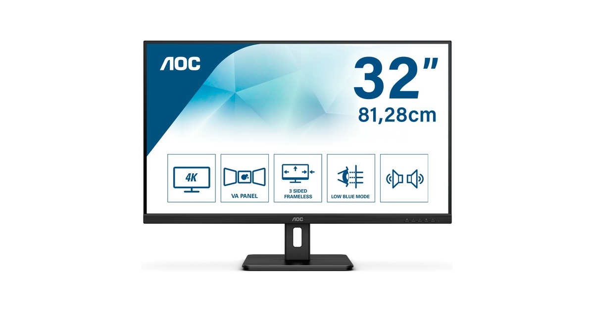 Der AOC U32E2N ist ein 80 cm (32") großer Business-Monitor, der sich durch seine hohe Auflösung auszeichnet, und damit mehr Fläche für jegliche Arbeit bietet. Die UltraHD Auflösung (3.840 x 2.160 Pixel) entspricht dem vierfachen eines herkömmlichen FullHD Modells, sodass man gestochen scharfe Texte, riesige Excel-Dateien oder Medien wie Fotos und Videos mit sämtlichen Details und absolut klar sehen kann. Für maximalen Komfort sorgen die großen Betrachtungswinkel von 178°, eingebaute Lautsprecher mit 6 Watt Leistung sowie die Signaleingänge HDMI und DIsplayPort. Um den Nutzer bei der Arbeit zu schonen, verfügt der AOC U32E2N außerdem über einen Blaulichtfilter sowie flimmerfreie LEDs.Art.-Nr.: 1686619