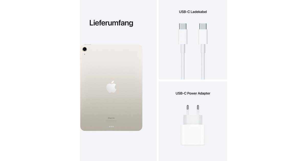 USB‑C Ladekabel (1m), 20W USB‑C Netzteil |