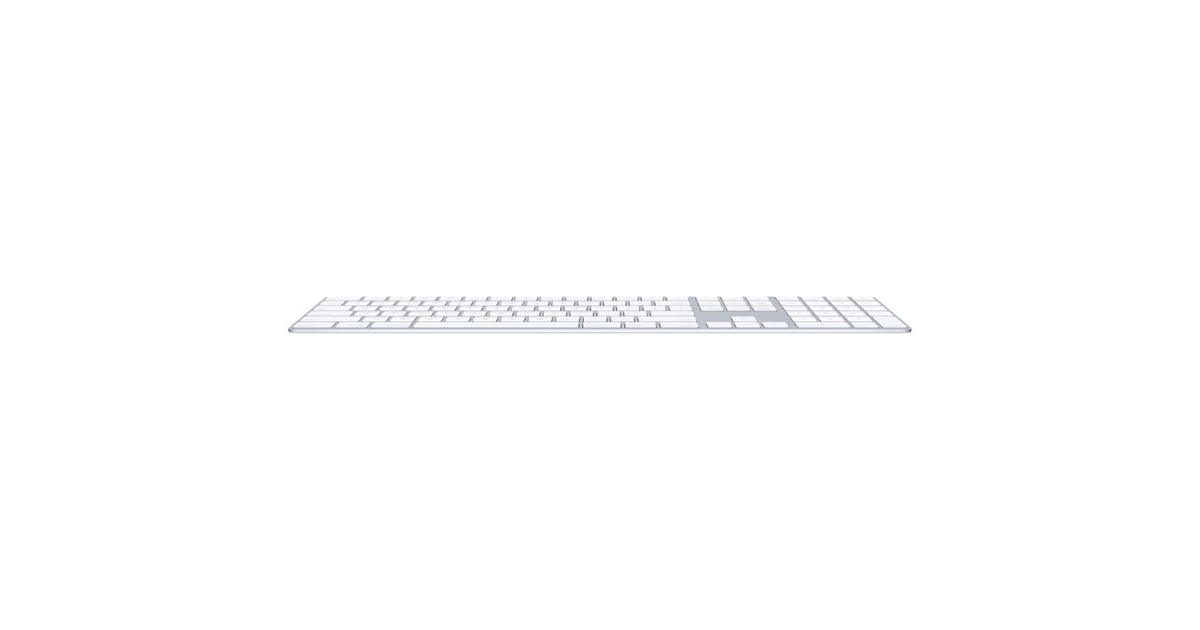 Das Apple Magic Keyboard mit Ziffernblock macht präzises Tippen besonders angenehm und einfach. Es hat ein erweitertes Layout mit Navigationstasten zum schnellen Scrollen in Dokumenten sowie normalgroße Pfeiltasten für Spiele. Ein Scherenmechanismus unter jeder Taste verbessert die Stabilität. Der optimierte Tastenhub und das flache Profil des Magic Keyboards sorgen für ein komfortables und präzises Gefühl beim Tippen. Der Ziffernblock ist außerdem praktisch für Tabellen und Finanzanwendungen. Und mit dem integrierten wiederaufladbaren Akku hat das Magic Keyboard unglaublich viel Power und hält einen Monat oder länger, bevor es aufgeladen werden musst.Art.-Nr.: 100007874